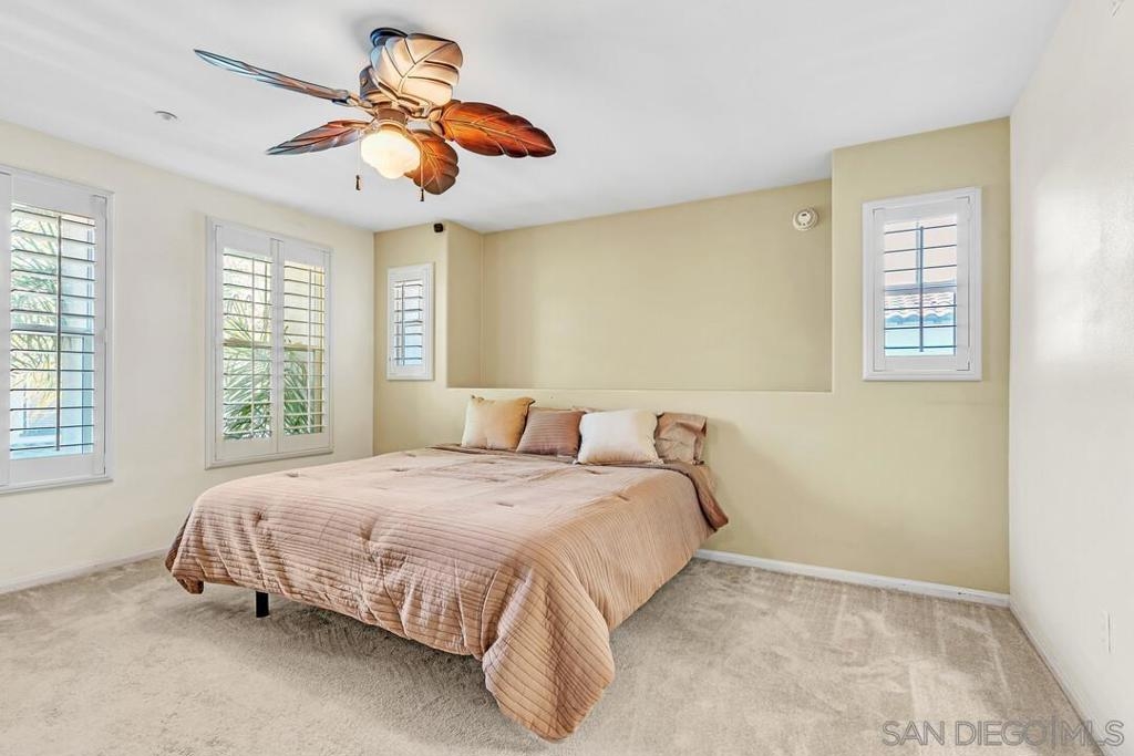 Welcome to this stylish 3 bed, 3.5 bath townhome located in the highly desirable Winding Walk community! This light-filled end unit offers 1,581 sq ft of thoughtfully designed living space. Step inside to an open inviting layout featuring plantation shutters, spacious kitchen with dining island, and plenty of cabinet space. Bright and airy living room is complete with ceiling fan, fireplace and outdoor balcony. Perfect for entertaining and everyday living. Best part, each of the 3 bedrooms has their own bathroom, offering privacy and flexibility for families, roommates, and guests. Attached 2-car garage includes EV charging and overhead storage racks to keep things organized and tidy. Located minutes from Otay Ranch Town Center, with easy access to shopping, dining, entertainment, top-rated schools, and 125 freeway. Enjoy modern connected living in one of Chula Vista's most vibrant neighborhoods—the lifestyle you’ve been waiting for!