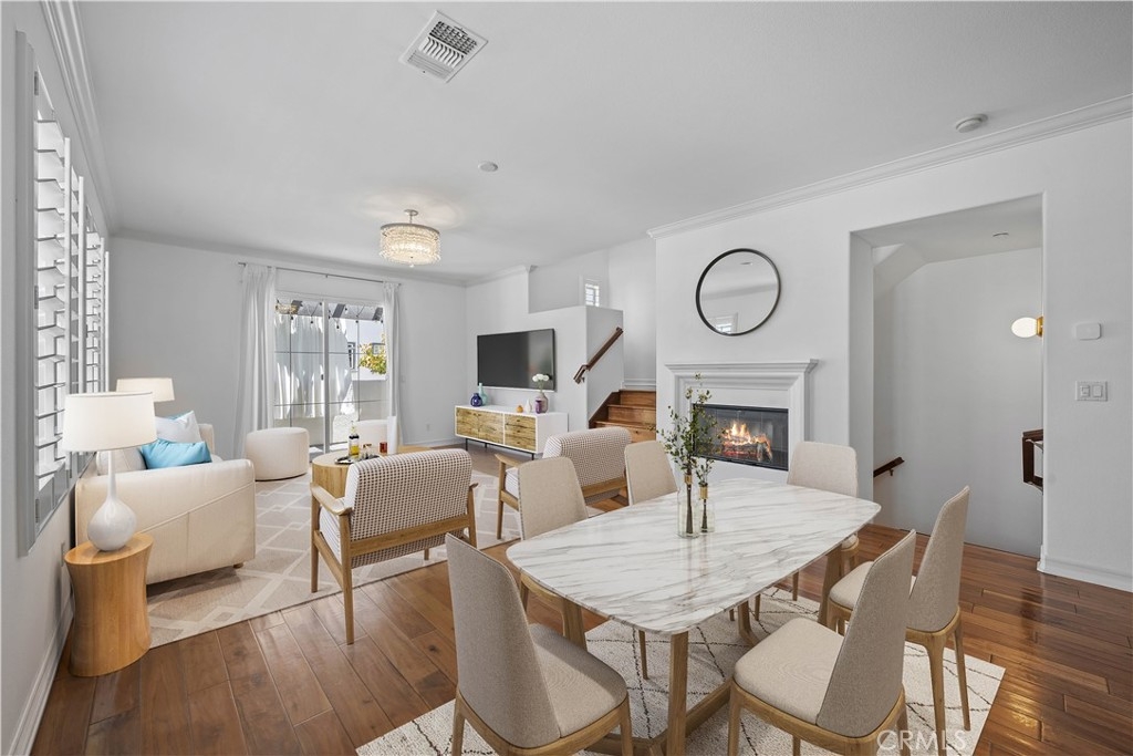 Welcome to your dream home in the desirable Winding Walk community of Agave! This exquisite 3-bedroom, 3.5-bathroom condo offers a spacious 1,581 square feet of modern living space, designed for comfort and style. This location is conveniently located steps away from the Otay Ranch shopping district with a bevy of restraunts, shopping, and entertainment. Step inside to discover a thoughtfully laid-out tri-level floor plan. The entry level boasts a convenient attached 2-car garage with EV Charging and plenty of storage space, a cozy bedroom with attached full bathroom, perfect for guests or a home office. Ascend to the second level where an open-concept living area awaits. The kitchen, equipped with stainless steel appliances and a step-in pantry, features a comfortable kitchen island with bar seating, ideal for entertaining. Adjacent, the living room is highlighted by a gas fireplace and opens to a charming outdoor balcony, providing a perfect spot for relaxation. The top floor is dedicated to the luxurious primary suite, featuring a generous walk-in closet and an en-suite bathroom. An additional bedroom and bathroom complete this level, offering ample space for family or visitors. The home has been upgraded with premium dark wood flooring, plantation shutters and crown moulding throughout. Custom bedroom closet built-ins offer sophisticated organization for your wardrobe. Residents of this vibrant community enjoy access to top-tier amenities, including pools, spas, a gym, and multiple recreation areas. This condo perfectly blends comfort with convenience, making it an ideal place to call home. Don't miss the opportunity to experience the best of Chula Vista living. Contact us today to schedule a viewing!