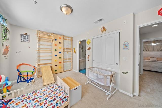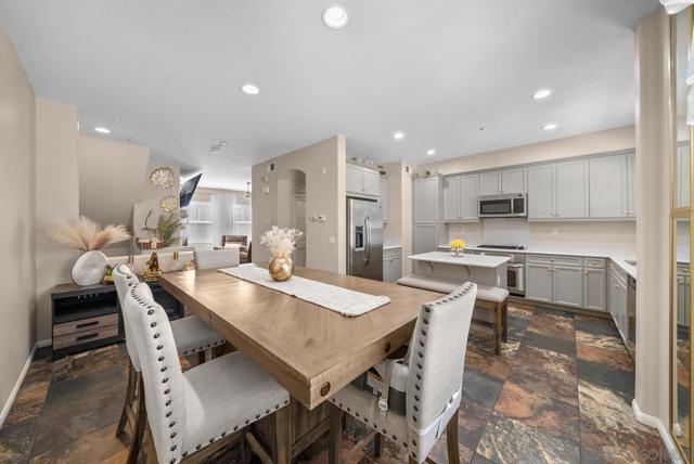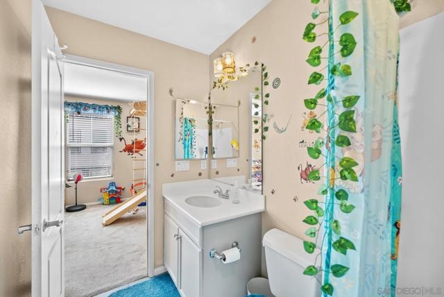 Welcome to Agave/Saguaro Community located in the Winding Walk Neighborhood in Otay Ranch. This modern mediterranean style townhome offers versatile living spaces spread over three levels, making it perfect for it's convenience and functionality. The first floor features a bedroom, perfect for guests or as a private home office with a slider door leading to a cozy front patio. On the second level, you have ceramic tile floors leading into an open-concept kitchen and dining area. Newly painted kitchen cabinets and stainless steel applicances complete this beautiful space. Adjacent is the living room, airy and bright, with a charming fireplace for those cozy evenings. This level also includes a convenient laundry room and a half-bath, blending practicality with style. The third floor features the primary suite with an attached en-suite bathroom, and an additional bedroom with its own bath. An attached 2-car garage offers ample storage and direct access into the home. Within the Agave/Saguaro community you have a large playground and a relaxing pool and spa. Additional amenities include access to a master community clubhouse which includes two additional pools, a gym, and a clubhouse available for hosting parties or gatherings. Surrounded by beautiful parks, hiking trails and the nearby lake, this townhome is ideally located within walking distance to schools, shopping centers, and entertainment venues, offering an all-encompassing lifestyle.
