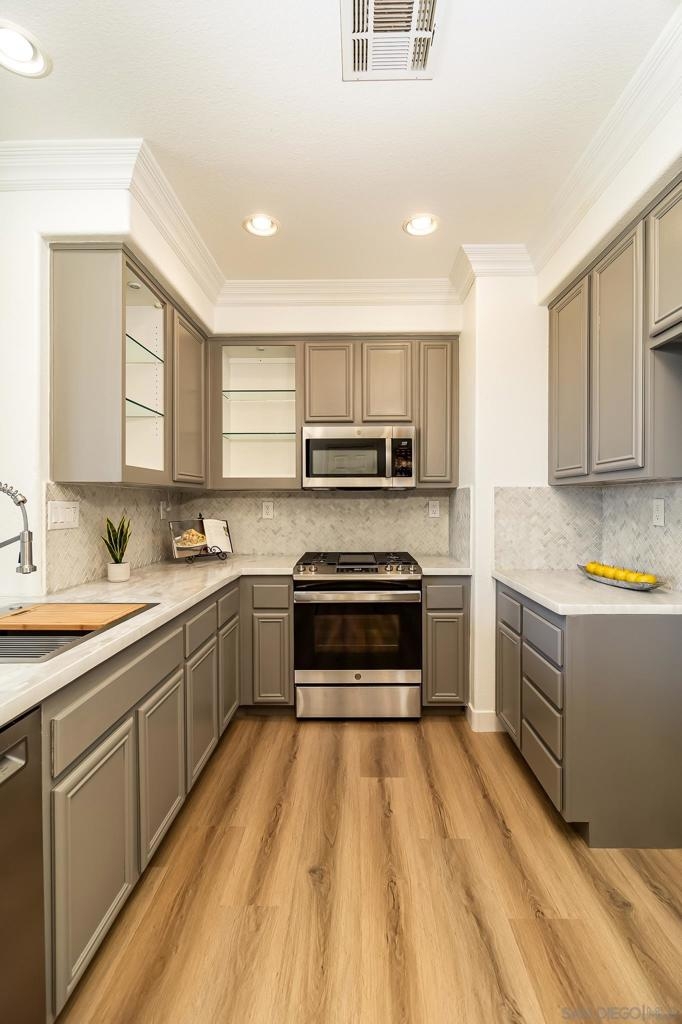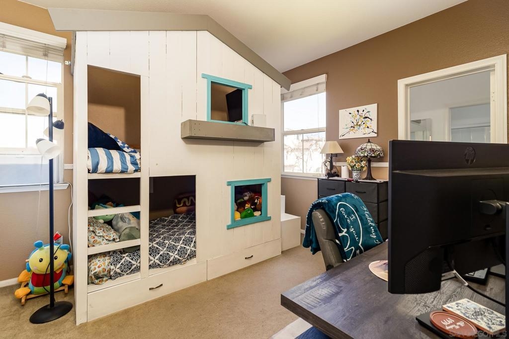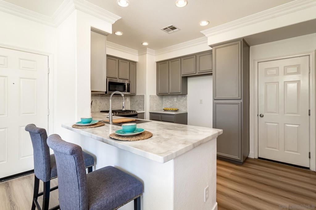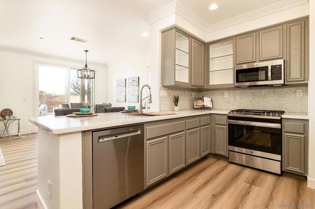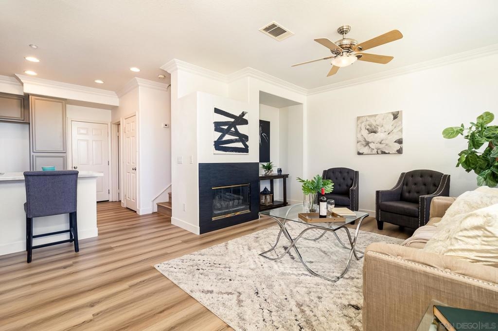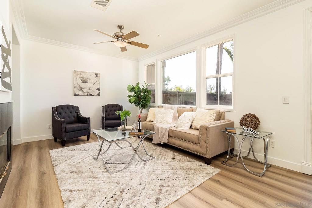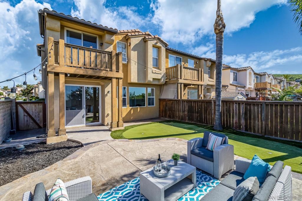 Step into this elegant and thoughtfully designed townhome located in the exclusive gated community of San Miguel Ranch! Celebrate in the luminous open floor plan and expansive outdoor area featuring a spacious private backyard. Positioned on a corner lot adjacent to the park with a private driveway with additional parking spaces. This unit is one of the few that offers rare ocean & sunset views overlooking the Coronado Bridge! Recently renovated, the kitchen boasts brand-new stainless steel appliances, complemented by new fresh LVP flooring and interior paint. Situated within close proximity to highly acclaimed schools and within walking distance to Liberty Elementary. This home has easy access to the major freeways. The community amenities feature a sizable Olympic swimming pool, relaxing Spa/Jacuzzi, clubhouse, tennis courts, half basketball court, gym, playground, mini water play area, and much more! This neighborhood offers resort-style living and a convenient lifestyle.