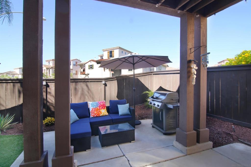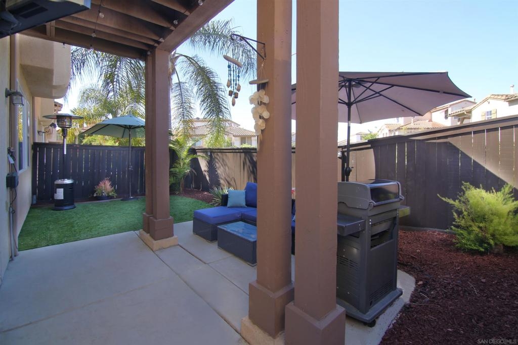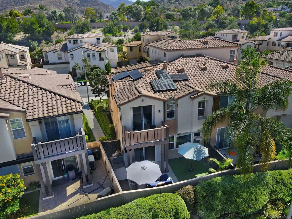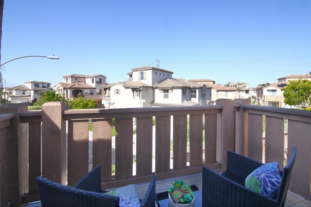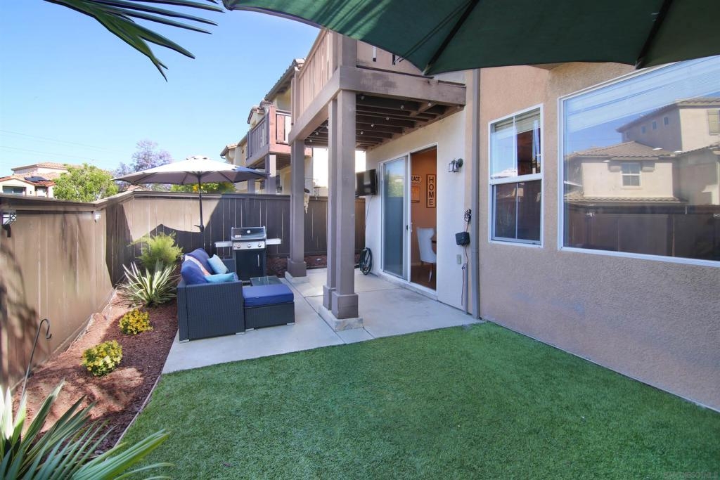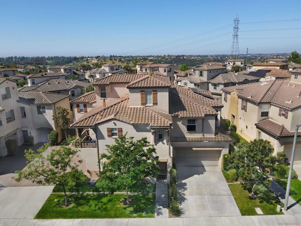 You just found your new home! Move-in for summer and enjoy the pool! This rarely available, premium end-unit townhome in the gated Alicante enclave has all the features you need for easy, elevated living. Bright and open 3-bedroom, 2.5-bath layout with vaulted ceilings and a seamless flow between the living, dining, and kitchen areas. Kitchen is equipped with a brand new stainless steel luxury refrigerator with beverage station, gas stove and full size pantry. Upstairs, discover three generously sized bedrooms, upstairs laundry and ample closet space, including a peaceful primary suite with a west-facing balcony for golden sunsets. The spa-inspired en-suite bathroom includes a Roman soaking tub, dual vanities, a separate shower, and two spacious walk-in closets. Outdoors, enjoy a private, fully fenced backyard with low-maintenance landscaping, turf, and even a wall-mounted outdoor TV — ideal for grilling, relaxing, and making the most of sunny days. This home is a privately positioned corner-set residence with a private use driveway and direct-access 2-car garage which provides space and convenience that feels like a detached home. Zoned for award-winning Eastlake Middle and High Schools and just a short walk to Liberty Elementary, the location also offers easy access to parks, shopping, dining, Southwestern College, and the 125 Freeway. More notable highlights include: **laminate flooring **dual-pane windows **kitchen pantry **new refrigerator **upstairs laundry room **solar panels with low-cost lease **water heater installed 2022 ** A/C system, **storage shelves in the garage **built in cabinetry, **recessed lighting, **video doorbell **new backyard fencing