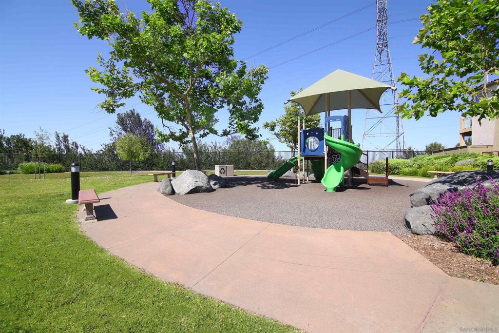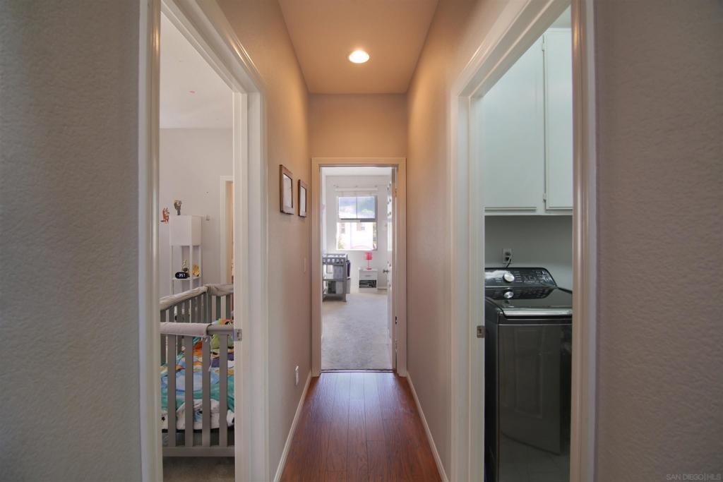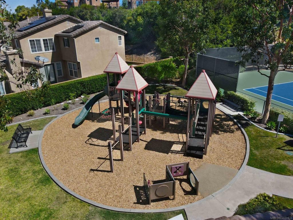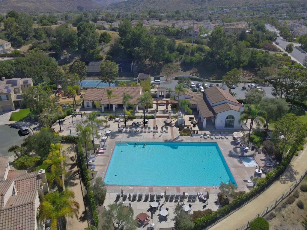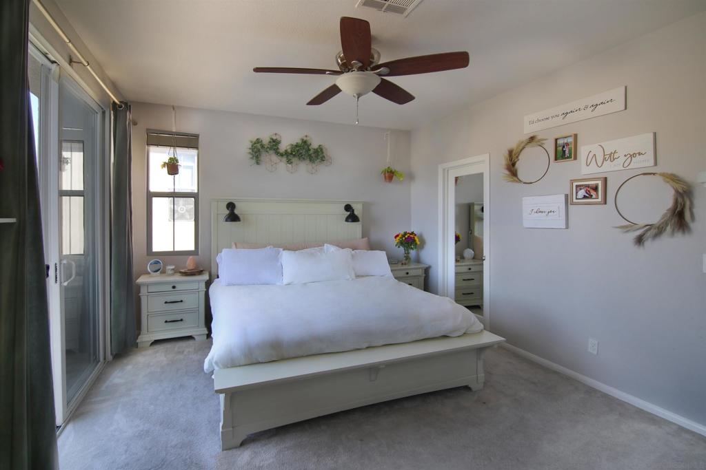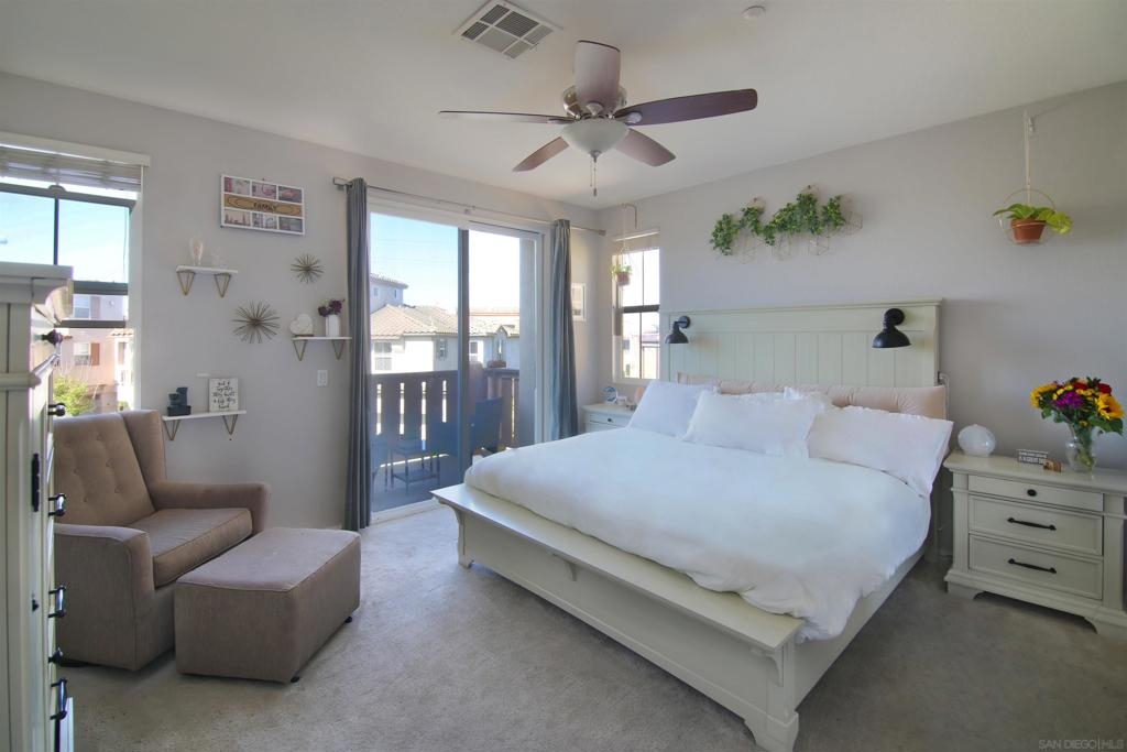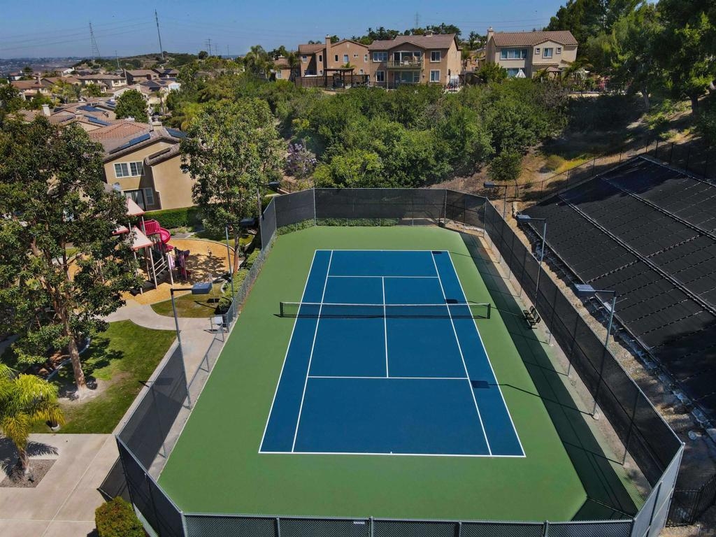 You just found your new home! Move-in for summer and enjoy the pool! This rarely available, premium end-unit townhome in the gated Alicante enclave has all the features you need for easy, elevated living. Bright and open 3-bedroom, 2.5-bath layout with vaulted ceilings and a seamless flow between the living, dining, and kitchen areas. Kitchen is equipped with a brand new stainless steel luxury refrigerator with beverage station, gas stove and full size pantry. Upstairs, discover three generously sized bedrooms, upstairs laundry and ample closet space, including a peaceful primary suite with a west-facing balcony for golden sunsets. The spa-inspired en-suite bathroom includes a Roman soaking tub, dual vanities, a separate shower, and two spacious walk-in closets. Outdoors, enjoy a private, fully fenced backyard with low-maintenance landscaping, turf, and even a wall-mounted outdoor TV — ideal for grilling, relaxing, and making the most of sunny days. This home is a privately positioned corner-set residence with a private use driveway and direct-access 2-car garage which provides space and convenience that feels like a detached home. Zoned for award-winning Eastlake Middle and High Schools and just a short walk to Liberty Elementary, the location also offers easy access to parks, shopping, dining, Southwestern College, and the 125 Freeway. More notable highlights include: **laminate flooring **dual-pane windows **kitchen pantry **new refrigerator **upstairs laundry room **solar panels with low-cost lease **water heater installed 2022 ** A/C system, **storage shelves in the garage **built in cabinetry, **recessed lighting, **video doorbell **new backyard fencing