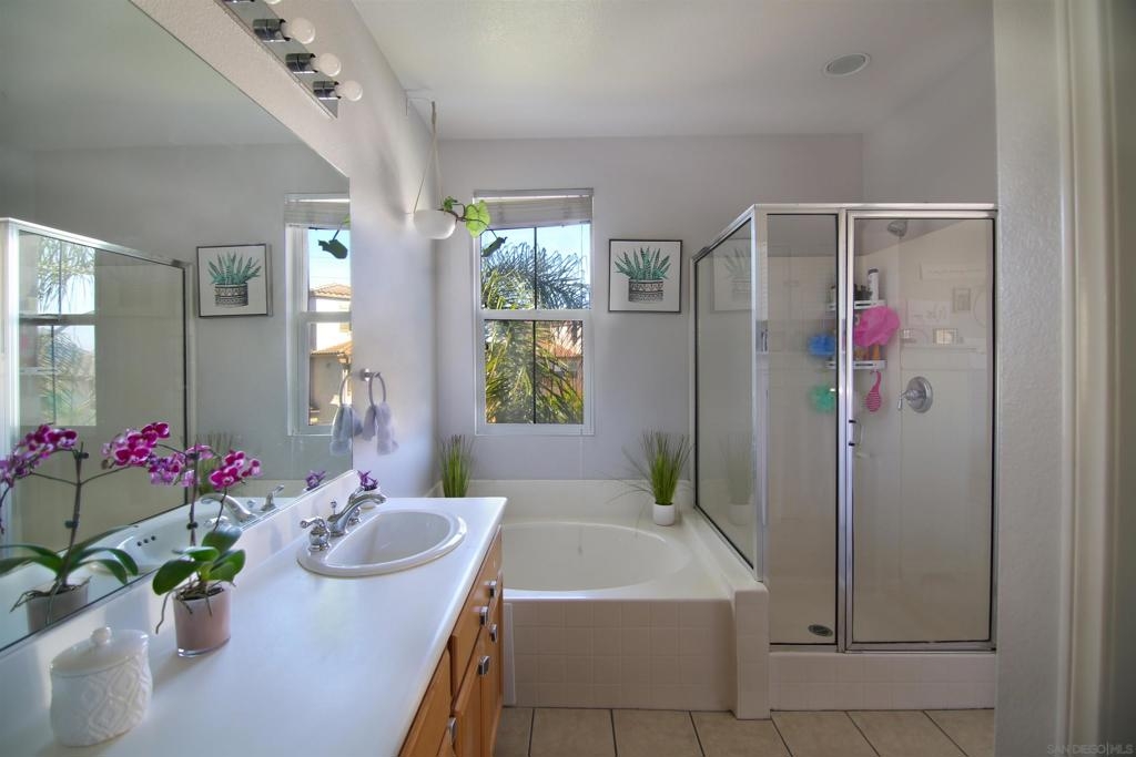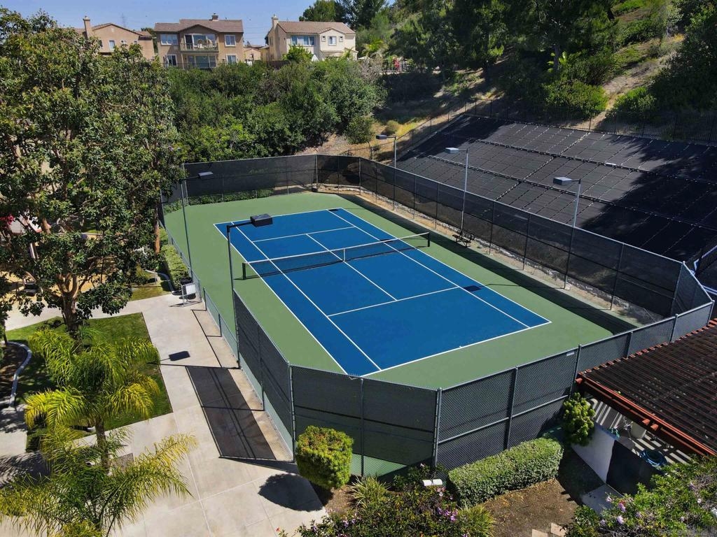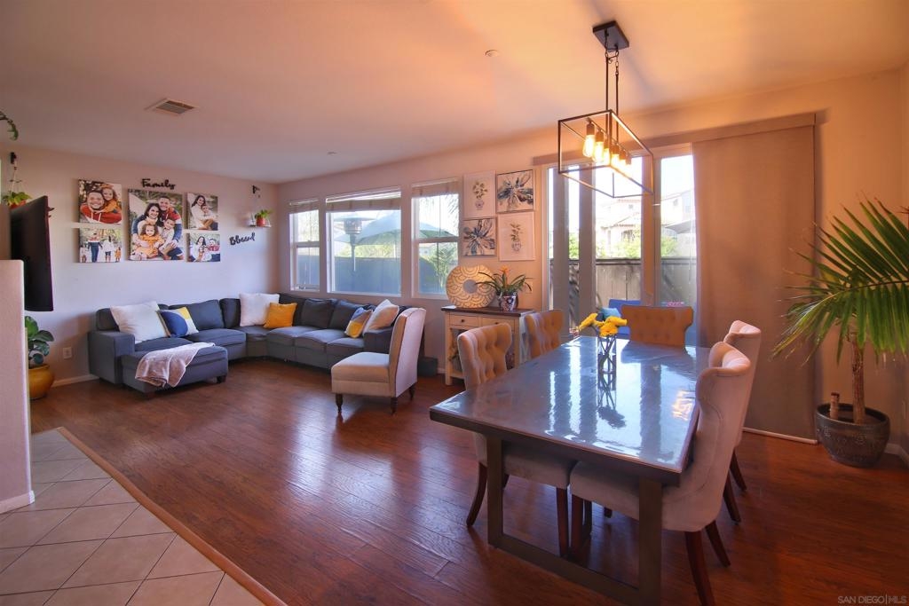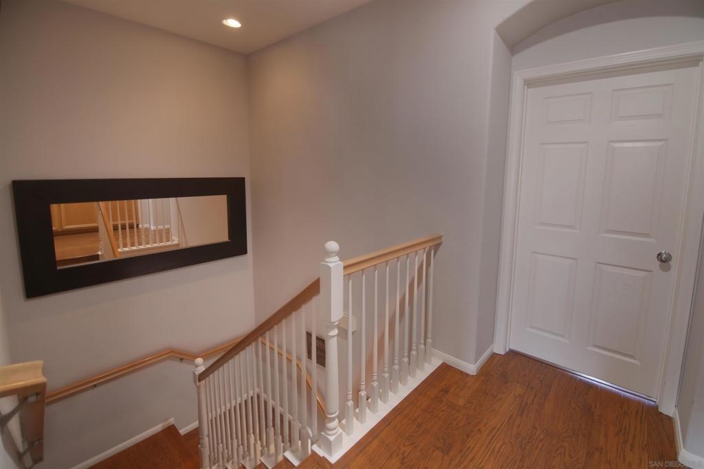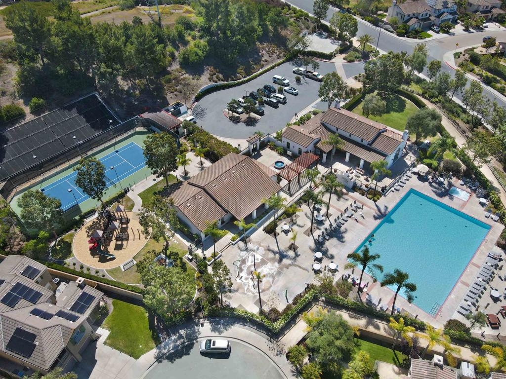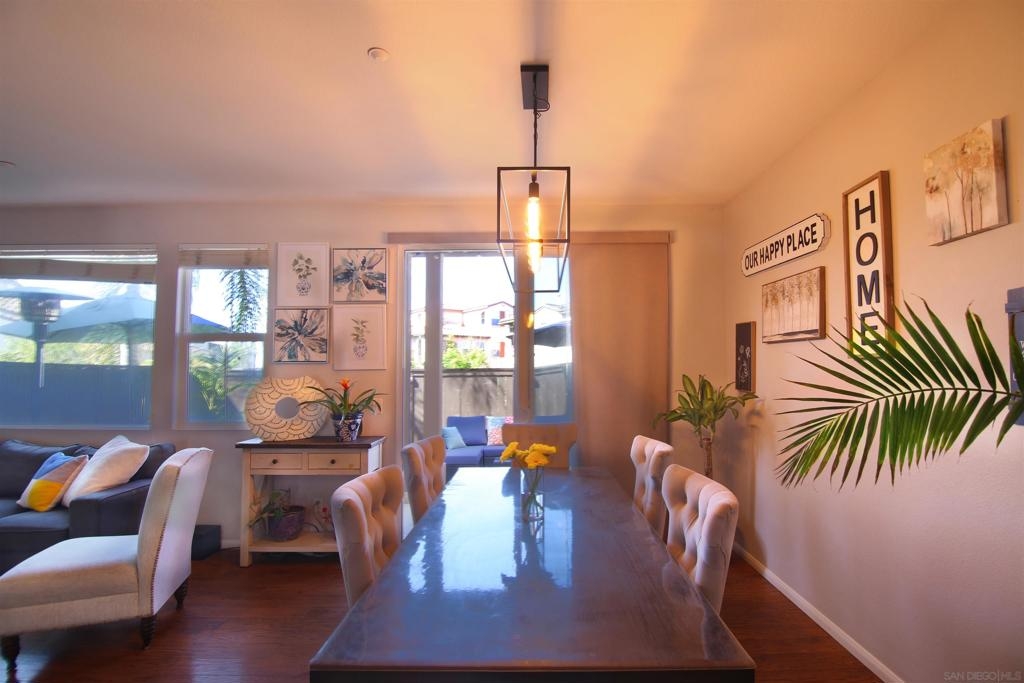 You just found your new home! Move-in for summer and enjoy the pool! This rarely available, premium end-unit townhome in the gated Alicante enclave has all the features you need for easy, elevated living. Bright and open 3-bedroom, 2.5-bath layout with vaulted ceilings and a seamless flow between the living, dining, and kitchen areas. Kitchen is equipped with a brand new stainless steel luxury refrigerator with beverage station, gas stove and full size pantry. Upstairs, discover three generously sized bedrooms, upstairs laundry and ample closet space, including a peaceful primary suite with a west-facing balcony for golden sunsets. The spa-inspired en-suite bathroom includes a Roman soaking tub, dual vanities, a separate shower, and two spacious walk-in closets. Outdoors, enjoy a private, fully fenced backyard with low-maintenance landscaping, turf, and even a wall-mounted outdoor TV — ideal for grilling, relaxing, and making the most of sunny days. This home is a privately positioned corner-set residence with a private use driveway and direct-access 2-car garage which provides space and convenience that feels like a detached home. Zoned for award-winning Eastlake Middle and High Schools and just a short walk to Liberty Elementary, the location also offers easy access to parks, shopping, dining, Southwestern College, and the 125 Freeway. More notable highlights include: **laminate flooring **dual-pane windows **kitchen pantry **new refrigerator **upstairs laundry room **solar panels with low-cost lease **water heater installed 2022 ** A/C system, **storage shelves in the garage **built in cabinetry, **recessed lighting, **video doorbell **new backyard fencing