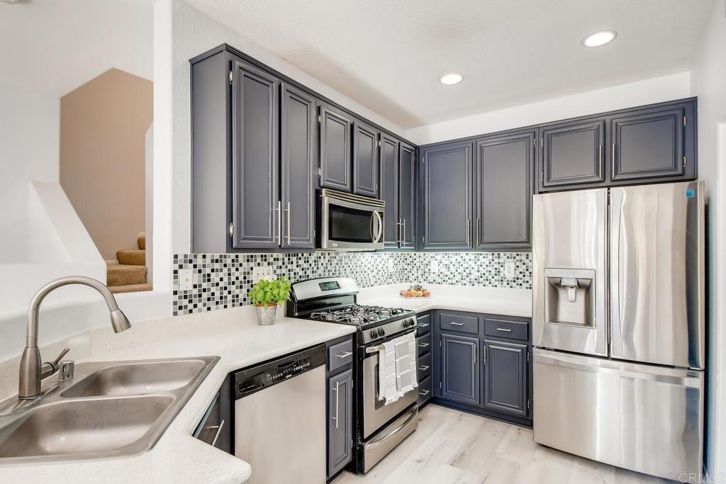 Welcome to this beautiful townhome centrally located in the Antigua at Eastlake gated community (Chula Vista). As you walk in, you will feel at home with newly painted walls and new luxury rigid core flooring. The kitchen offers newly painted cabinets, a beautiful countertop, and stainless-steel appliances. Kitchen offers access to the water heater and laundry room which leads you to the attached garage. As you pass the half bathroom in the first floor, you find yourself walking up the stairs towards the two bedrooms – each with its own bathroom. The unit offers easy access to visitor parking. This is the only unit within the gated community with exclusive citrus trees (lemons, oranges). The complex includes a community pool, clubhouse, dogs park and playground, This gated community is located a short distance to highly desired schools (Eastlake High School and Olympic View Elementary), and is a short distance from the two major shopping centers with a Walmart and Home Depot, Otay Mall and the 125 FWY. If you like going out for walks around the neighborhood, or visiting parks, you’ll love this community. FHA and VA approved!