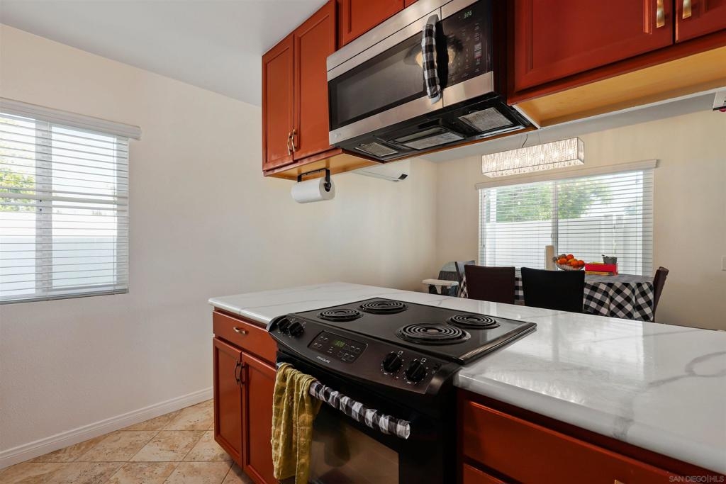 Rare opportunity to own the largest end unit model in the community that overlooks huge greenbelt. Enjoy plenty of living space with a separate living and family room. The kitchen and dining area flow seamlessly together for ease of daily living. The kitchen has been upgraded to feature quartz countertops accented by a mosaic tile backsplash, stainless steel appliances and an eat-at counter to keep the conversations flowing during meal preparation. All bedrooms are upstairs. FHA/VA approved!! The primary bedroom features a sit-at vanity area, mirrored closet doors and a private deck with peaceful tree-top views. Both bathrooms have been updated. A leased solar system maximizes energy efficiency. Parking will be effortless with a detached 2 car garage plus 1 assigned space next to the garage. The garage has laundry hook-ups and adds extra storage space. Autumn Hills offers its residents large, manicured greenbelts, a tennis court and a sparkling pool. HOA dues include water & trash. When you hanker for a Frappuccino, Slurpee or Double Double, you are in luck, as they are only a few blocks away! For hours of outdoor enjoyment, Otay Valley Regional Park is just down the street too. The 805 is one block away for easy commuting. Your feet could be in the sand at Imperial Beach in 20 minutes….what more could you ask for!? Don’t let this opportunity pass you by!