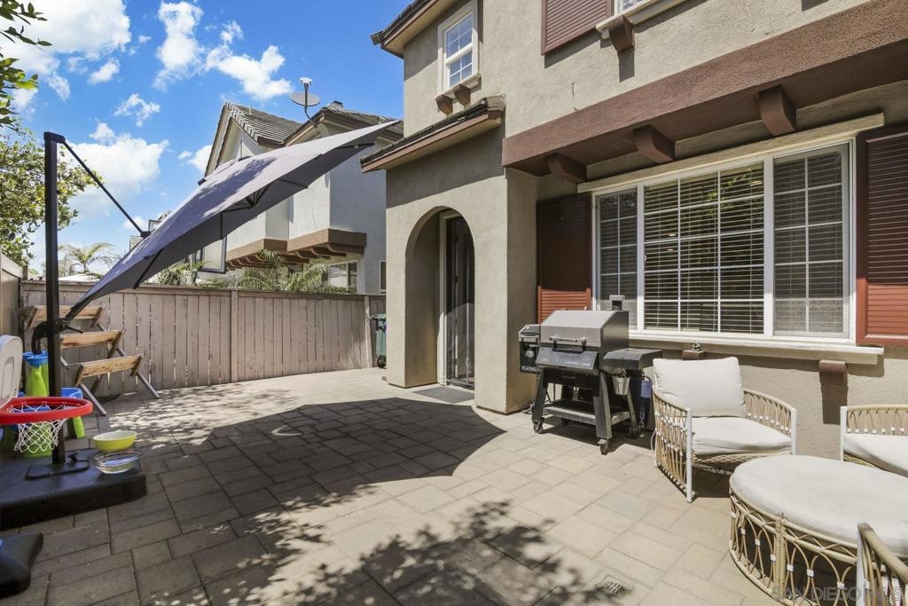 2-story townhome in Belleme @ Otay Ranch. Primary bed offers dual closets, en suite bath & dual sinks. Tiled flooring on entry level, laminate upstairs. Kitchen features new quartz counters, SS appliances & adjacent laundry. Attached garage w/ 2 additional parking spaces. Large private patio w/ eco-friendly pavers, recessed lighting, central AC & drop-down attic ladder for storage. Amenities include pool/spa, BBQ area & green space.