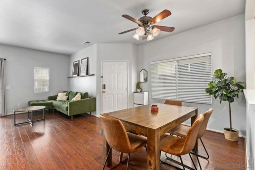 Don’t miss this immaculate townhome-style residence in the beautiful Belleme Chateau community! The main level features the kitchen with quartz countertops that opens to the dining area and living room, a convenient half bath and direct access to the 2-car garage, upgraded with epoxy flooring. Upstairs is the spacious Master Suite offering a large walk-in closet, an additional 2 bedrooms which share a bathroom, plus the full size laundry room equipped with cabinets, shelving and a sink. Attractive engineered wood flooring is featured throughout. Enjoy the cozy gas fireplace indoors or the inviting outdoor space, highlighted by the white vinyl picket fence and low maintenance turf. This home is move-in ready and VA approved! The numerous Community amenities include a pool/spa, a tot playground and an extra guest parking decal! Feels like a single family home with the white picket fence and inviting yard space! Complex Features: ,,, Equipment: Dryer, Washer Sewer: Public Sewer Topography: LL