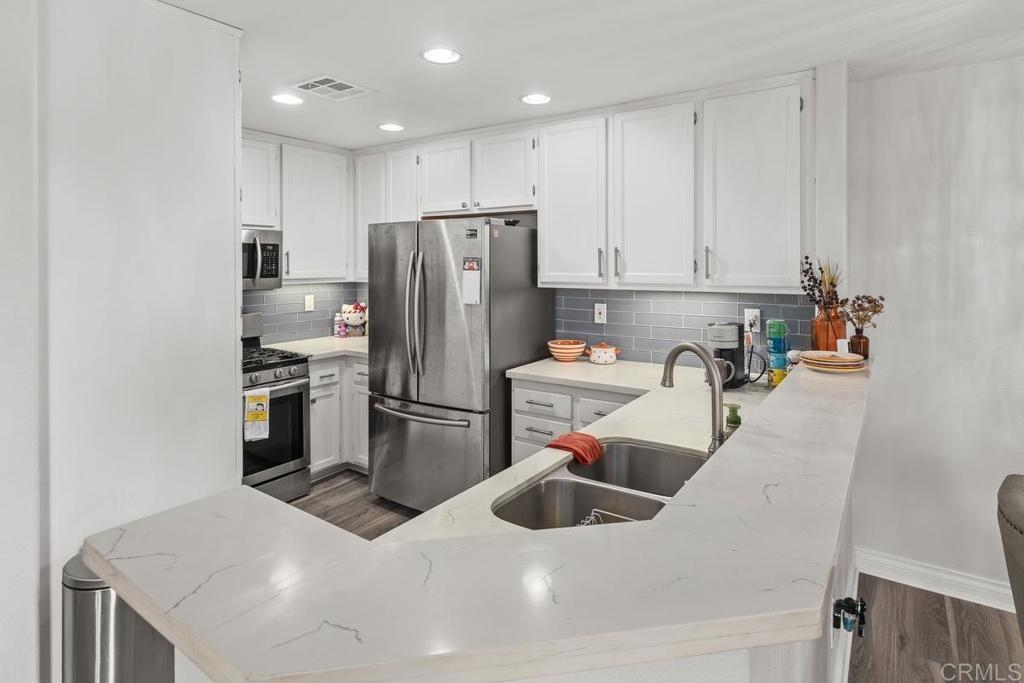 Open and bright home newly remodeled, beautiful waterproof flooring throughout, open kitchen with a marble style countertop & stainless steal appliances, new vanities in bathrooms, tasteful accent walls, fire place, bedrooms are private since they are at each end of the condo, very cute balcony with artificial turf, move in ready. Walking distance to schools, parks, shopping and transportation.