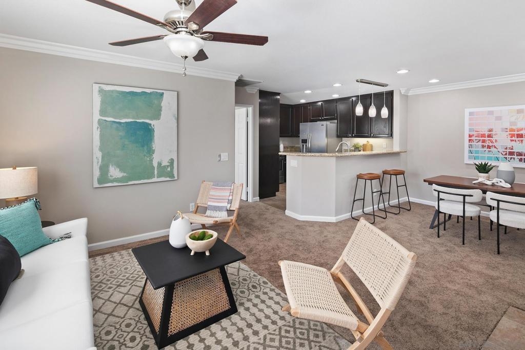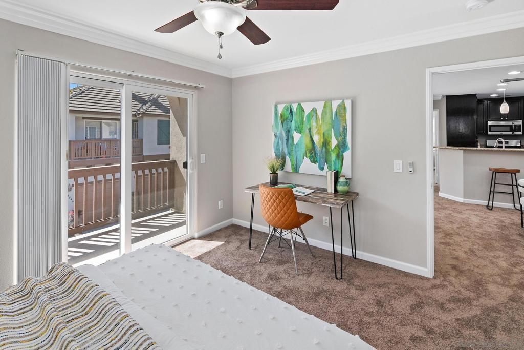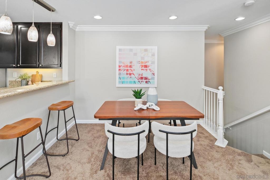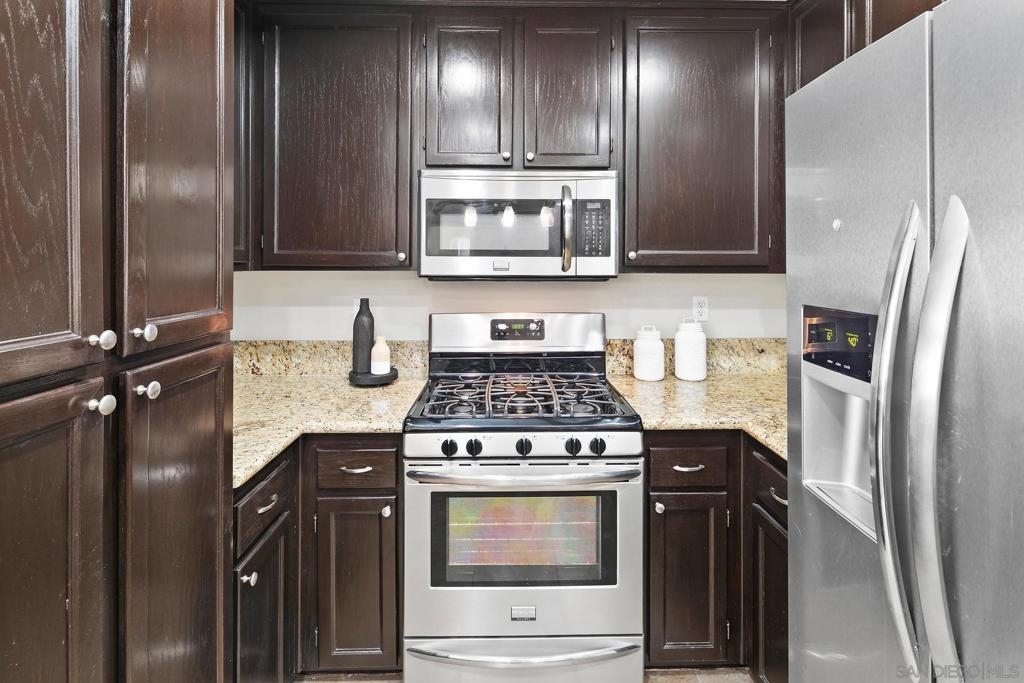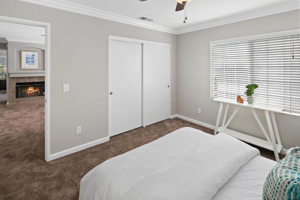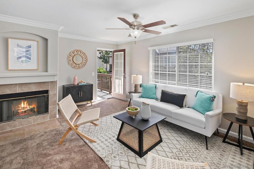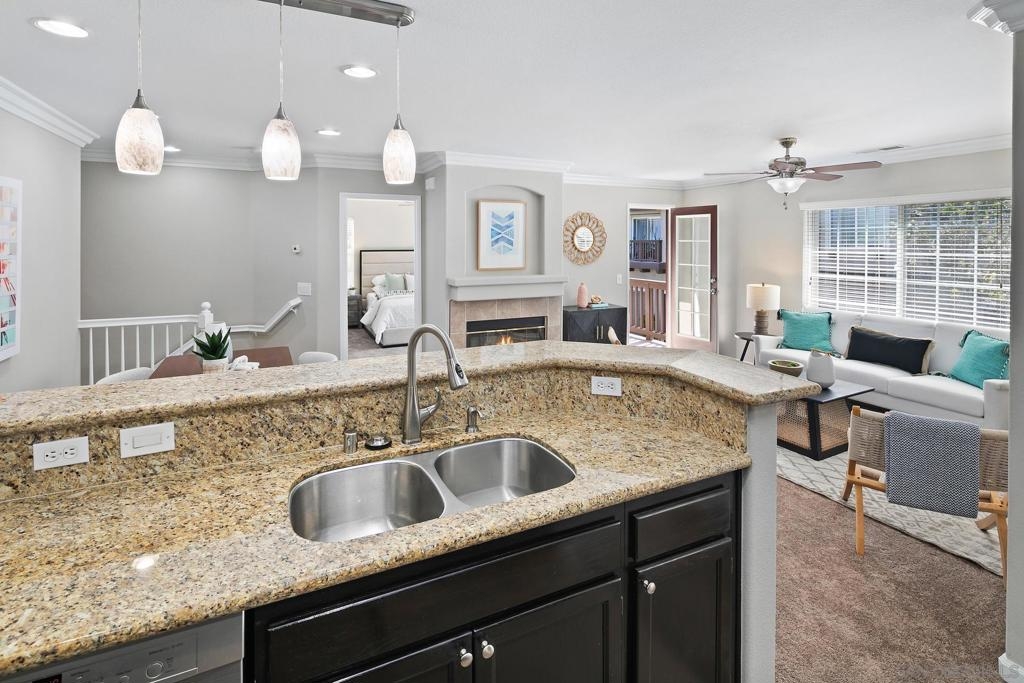 This elegantly renovated 2-bedroom, 2-bathroom condominium boasts refined features including crown molding, stainless steel appliances, and granite countertops throughout. Revel in the warmth of the newly tiled fireplace along with freshly installed carpeting and newly painted interior. The master bathroom showcases a pristine tiled bathroom with a luxurious shower enclosure and double sink. Enjoy modern comforts like air conditioning, a convenient 1-car attached garage, with washer/dryer and a charming balcony. Accessible via stairs from the 1st-floor entry level with the main living space located on the 2nd floor.
