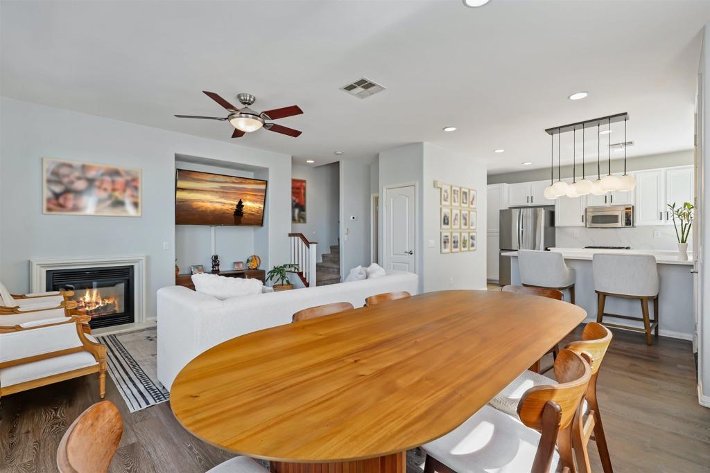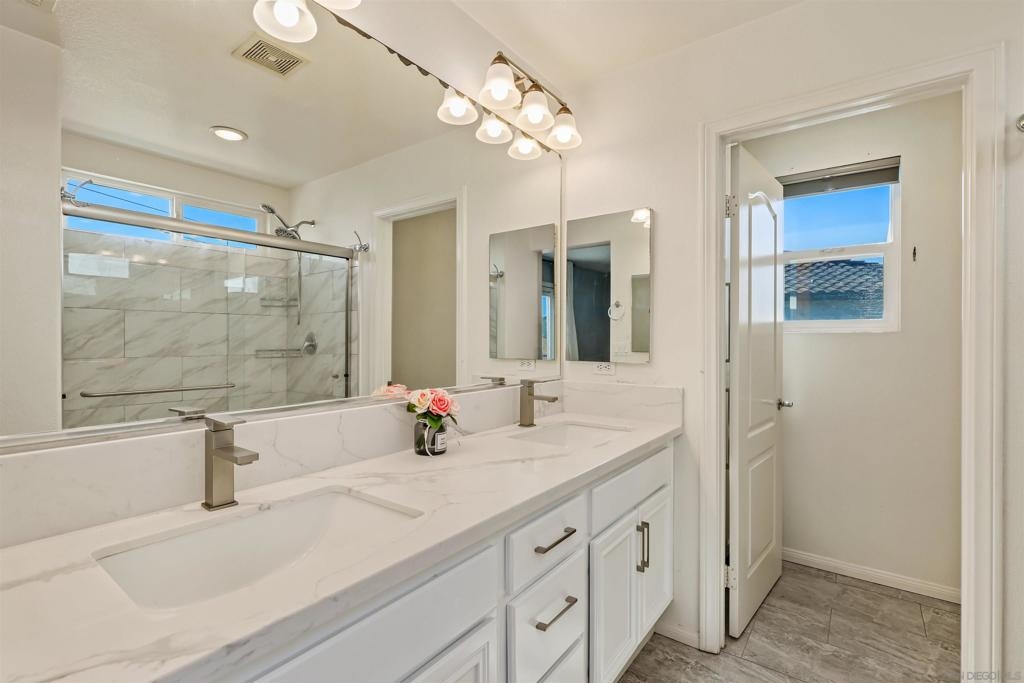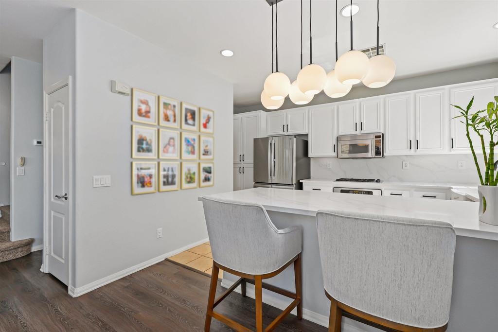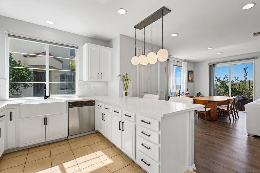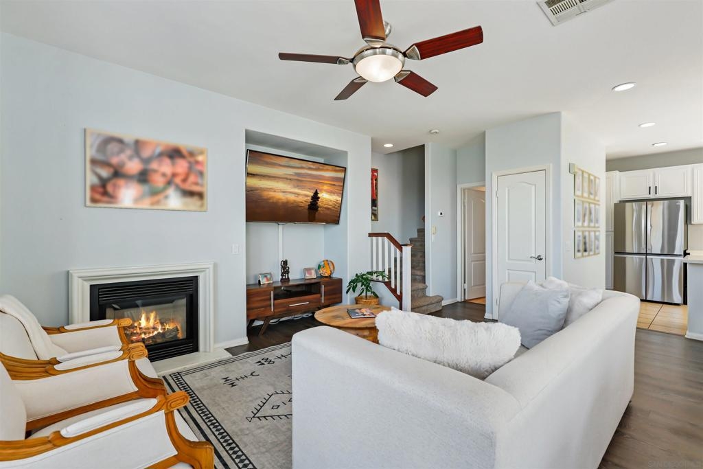 Welcome to your dream townhome! This stunning 3-bedroom, 2.5-bathroom gem is nestled in a serene neighborhood, offering the perfect blend of tranquility and breathtaking views of the ocean and hills from your own private deck. As you enter, the beautifully landscaped front entrance invites you into a cozy open-concept living area adorned with laminate flooring and custom light fixtures. The spacious kitchen, equipped with stainless steel appliances and elegant quartz countertops, makes cooking and entertaining a true delight. Enjoy gatherings in one of the largest backyards in the community, thanks to its coveted end-unit location—ideal for sipping coffee in the morning or hosting friends and family in the evening. Retreat to the spacious primary bedroom, bathed in natural light and featuring a large remodeled bathroom and custom built-ins in the bedroom and linen closets. You’ll love having your own private deck, where stunning views provide the perfect backdrop for relaxation. The two additional bedrooms are equally inviting, offering ample space and sunlight. With convenient access to the community pool, fitness center and gathering areas at the clubhouse. Enjoy close proximity to Mt. San Miguel Park, UC San Diego Health, and a variety of dining and entertainment options, this home is perfectly positioned for your lifestyle. Don’t miss your chance to own this exquisite property!