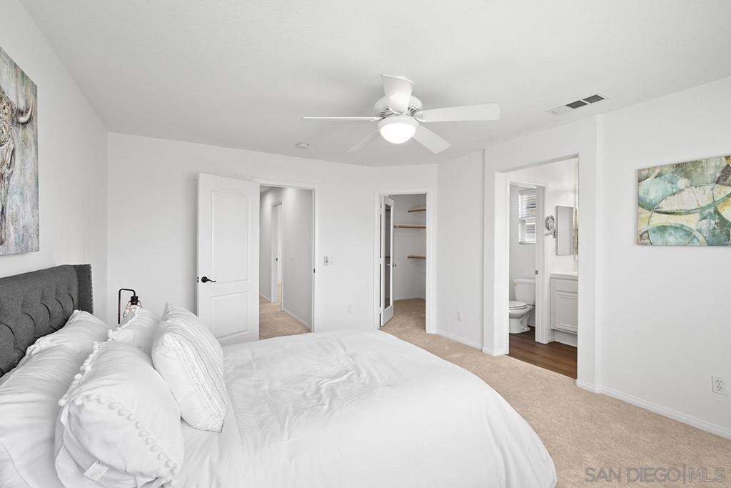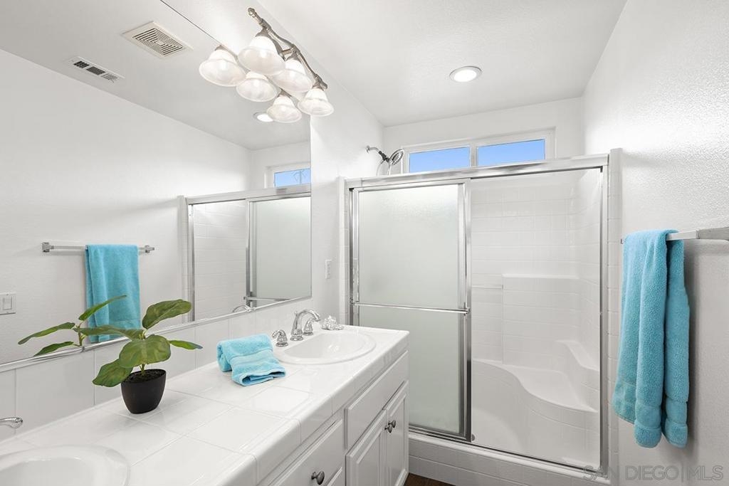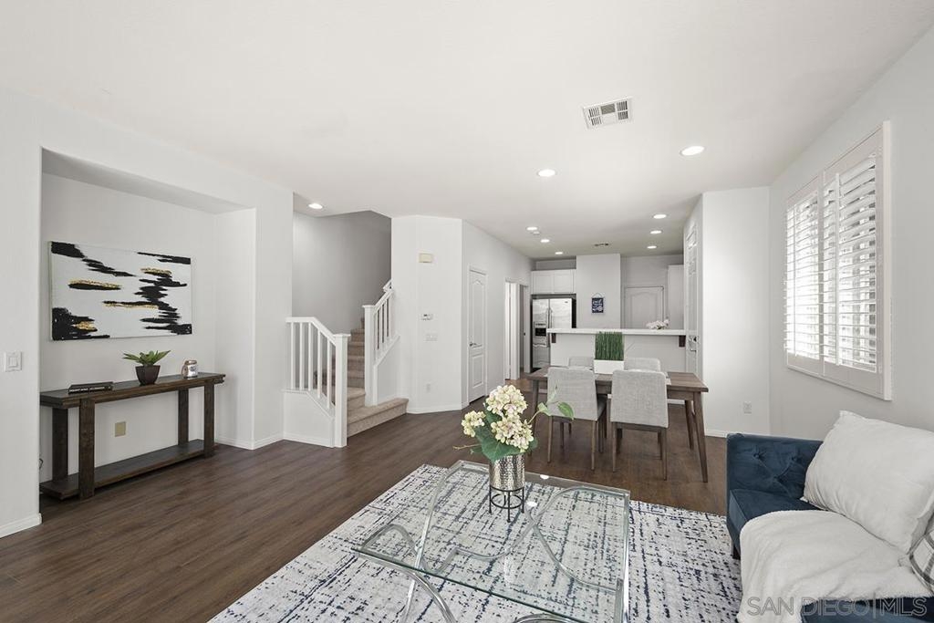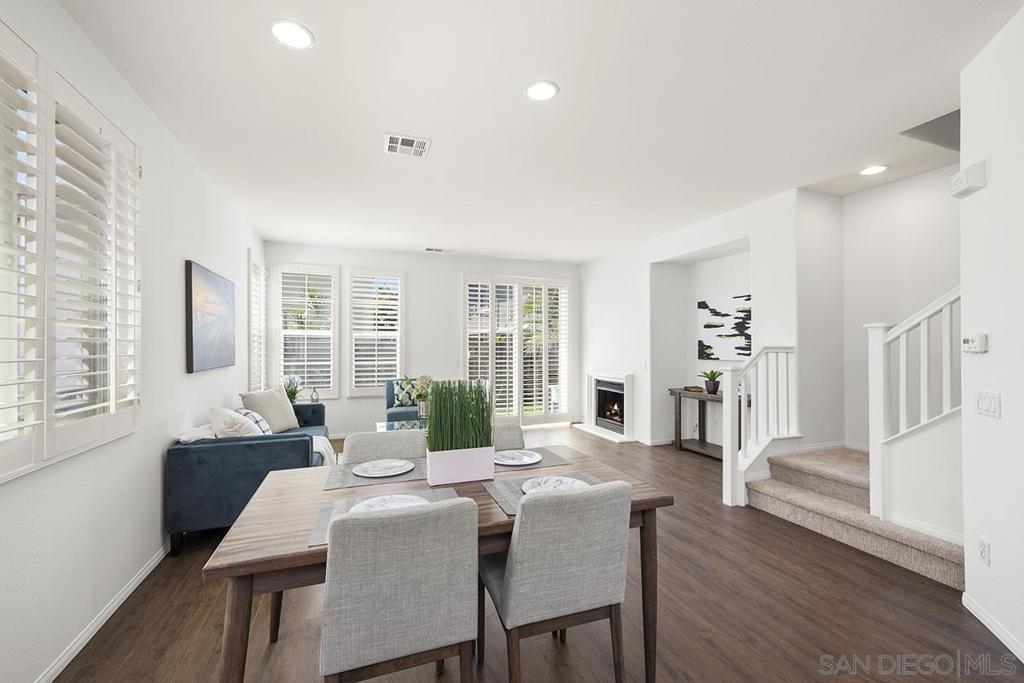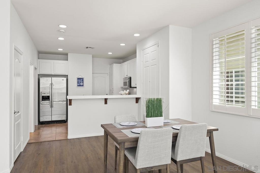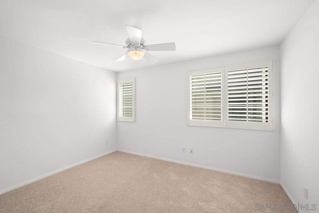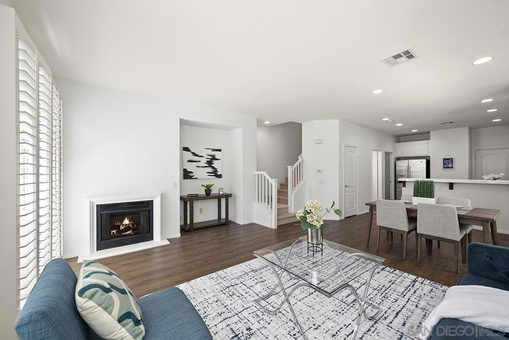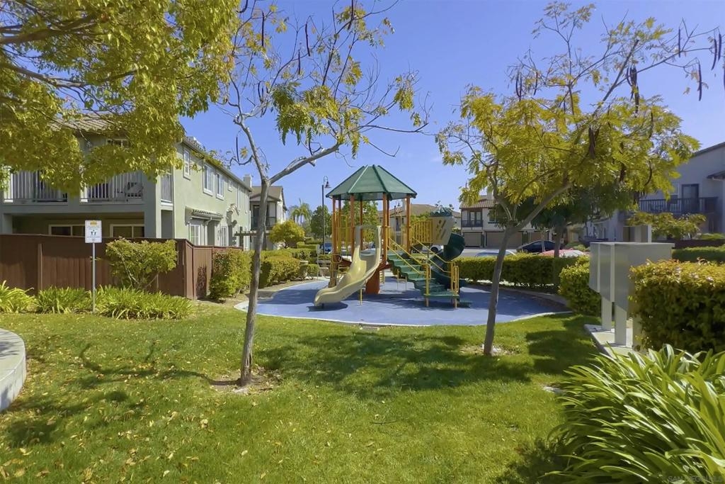 Don't miss this bright and airy end-unit townhome in beautiful Belleza of San Miguel Ranch! With no neighbors on one side and a private backyard, this home offers the perfect blend of tranquility and convenience. The inviting living room features a cozy fireplace, Diamond Peak luxury vinyl plank flooring, and a powder room for effortless entertaining. The open kitchen shines with stainless appliances, ample cabinetry, and recessed lighting. Upstairs, plush new “Champagne Glee” carpet adds warmth to both bedroom suites. The expansive primary bedroom features a generous walk-in closet and ensuite bathroom with dual vanities. The second bedroom also offers its own walk-in closet. Enjoy your professionally landscaped backyard with turf—ideal for al fresco evenings or soaking up the sun. Additional perks include custom window shutters throughout, an attached 1-car garage, dedicated utility room with a full-size washer and dryer, and a prime location within the community. This one won’t last! Nestled in the heart of Chula Vista, San Miguel Ranch offers scenic beauty, modern convenience, and a tight-knit community, surrounded by rolling hills and vibrant sunsets. The planned community’s HOA offers a variety of amenities all in one convenient location, including a pool, spa, children’s water park and tot lot, tennis and basketball courts, a gymnasium, and a clubhouse available for weekend rentals. San Miguel Ranch’s unbeatable location offers easy access to the 125 freeway for seamless commutes, with top-tier shopping, dining, and entertainment just minutes away at The Shops at San Miguel Ranch. Families will appreciate the highly rated schools and excellent school districts, further enhancing the area’s strong sense of community, making San Miguel Ranch an exceptional living experience that harmonizes serenity and practicality.