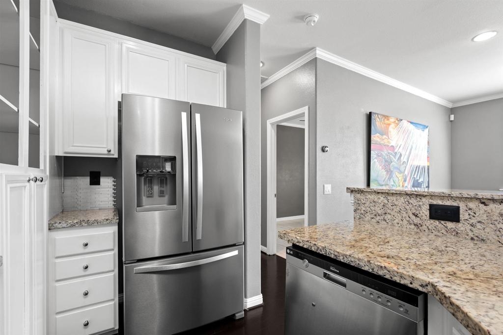 Wow - Beautiful End Unit - Highly Upgraded - Belleze Beauty - Original Owner - Next to Guest Parking - Great Unit - Only one stairway to main area - Features open floor plan - Center island - Beautiful white blinds - Crown moldings - Neutral flooring - Large master area & walk-in w/built-in storage racks - Beautiful granite topped vanities - Wide Baseboards - Stacked washer & dryer - Fireplace - Upgraded stainless steel appliances - The complex features a park and playground - The San Miguel HOA features pool/spa, workout area, sports court, splash area - Clubhouse features catering area for large events - Close to shopping