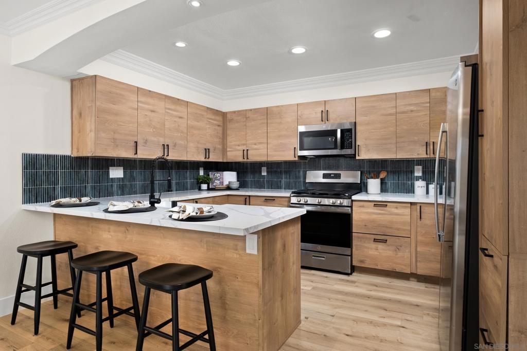 This exceptional end unit townhouse includes 2 bedrooms and 2.5 bathrooms with an attached garage and an array of desirable features. The townhouse spans three levels, with a first floor garage with laundry hookups. The middle floor includes an open-concept kitchen and living room that is perfect for entertaining and family gatherings. A central fireplace. A balcony off of the dining room to enjoy indoor-outdoor dining. The third floor is where you will find two full bathrooms, ensuring comfort and privacy for both bedrooms. The large primary bedroom is a retreat in itself, featuring an additional private entrance. A community pool and spa are just a short walk through the complex. Close proximity to the 805 freeway, supermarkets, parks, and more.