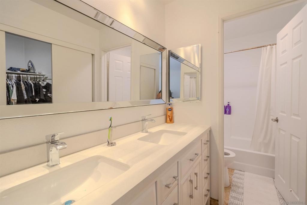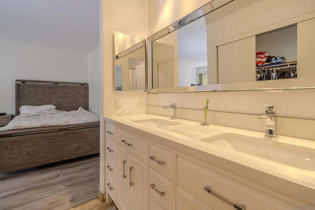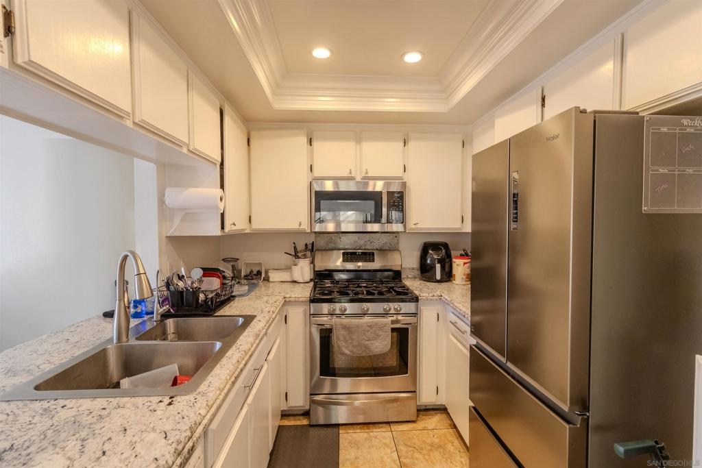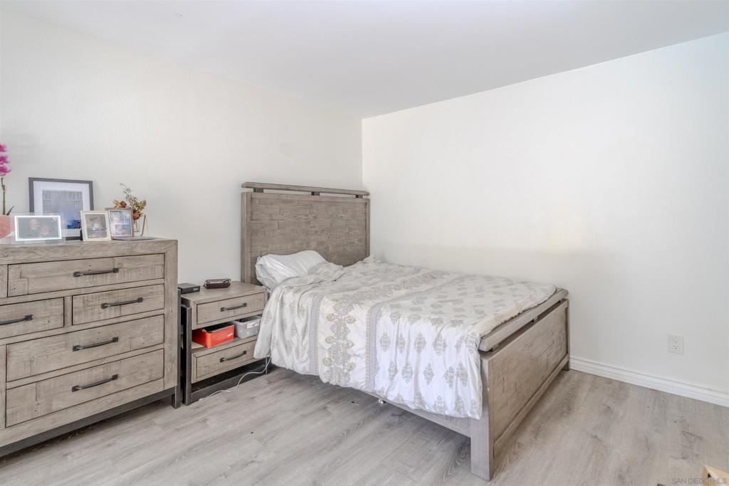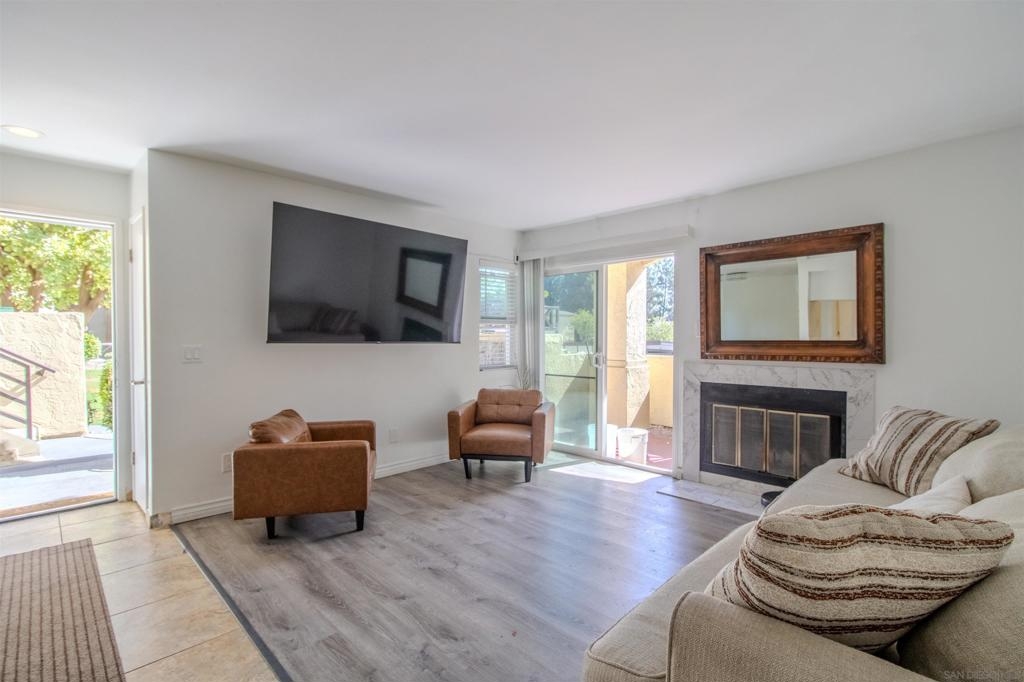 Discover the ultimate blend of comfort and style in this beautifully upgraded 3-bedroom, 2-bath condo! Nestled on the first floor as a single-level corner unit, this home offers both privacy and sophistication. Step into the heart of this haven, featuring sleek modern cabinetry, a spacious pantry, luxurious quartz countertops — perfect for everyday living. The elegance continues with upgraded flooring that flows effortlessly throughout, paired with fresh paint. Enjoy the convenience of an in-unit laundry closet with a full-size stacked washer and dryer, all with the convenience of TWO outside patios - one for the living room and one for the primary bedroom. Located in the sought-after Camelot community, right next to Eastlake, you'll enjoy resort-style amenities, including sparkling pools, lush parks, and playgrounds. Picture yourself unwinding by the serene lake, complete with paddle boats and a welcoming clubhouse. Camelot is part of one of the most desirable areas in San Diego, offering an unmatched lifestyle. Don’t miss your chance to make this vibrant, picturesque neighborhood your new home!