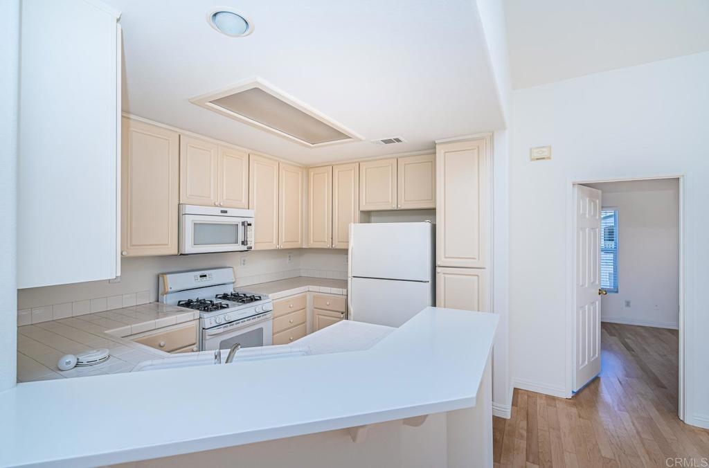 Beautiful 2 bedroom, 2 bath townhome with attached 2 car garage directly across the street from award winning Corky McMillin Elementary! The open concept kitchen opens up to the living and dining room with vaulted ceilings and plenty of natural light. The balcony off of the living room is great for morning coffee and a good book and creates a spacious and comfortable atmosphere. Upgrades include beautiful, newly refinished hardwood floors throughout, fresh paint, including all interior doors, frames and staircase railings and new blinds. The community is meticulously cared for and includes a pool, spa, tons of acres of walking trails, parks, tennis and basketball courts. Restaurants and stores are all incredibly convenient within this master planned community!