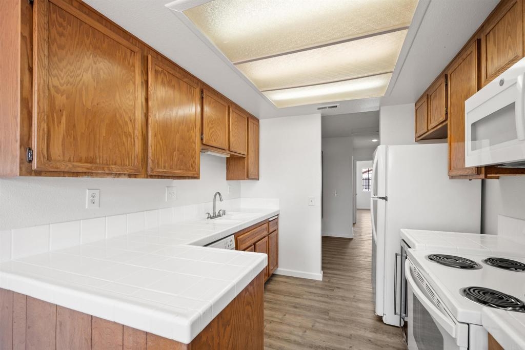 WONDERFUL CHARTER POINT TOWNHOME - OPEN, AIRY FLOOR PLAN - LIVING AREA ALL ON ONE LEVEL - VERY CONVENIENT - END UNIT - VAULTED CEILINGS - NEW WHITE , BRIGHT PAINT - NEW LIGHT FIXTURES IN BATHROOMS - WONDERFUL NEW LIGHT FIXTURES IN BOTH BATHS - NEW NEUTRAL LUXURY VINYL PLANK - LARGE GREAT ROOM WITH FIREPLACE - LARGE NOOK ON DINING ROOM AREA - EXTRA-LARGE PATIO - LOVELY BRICK PATIO - LOVELY ROSES AND JASMINE LINE THE PERIMETER - SUNNY KITCHEN - MASTER BEDROOM HAS VAULTED CEILINGS - 2 CLOSETS - SECONDARY BEDROOMS FEATURES ADDITIONAL STORAGE - LARGE 2 CAR GARAGE WITH EXTENSIVE STORAGE - ENJOY POOL/SPA - PLAYGROUND AND RV/BOAT PARKING - NO MELLO-ROOS - CLOSE TO SHOPPING / BUSINESS AND FREEWAYS