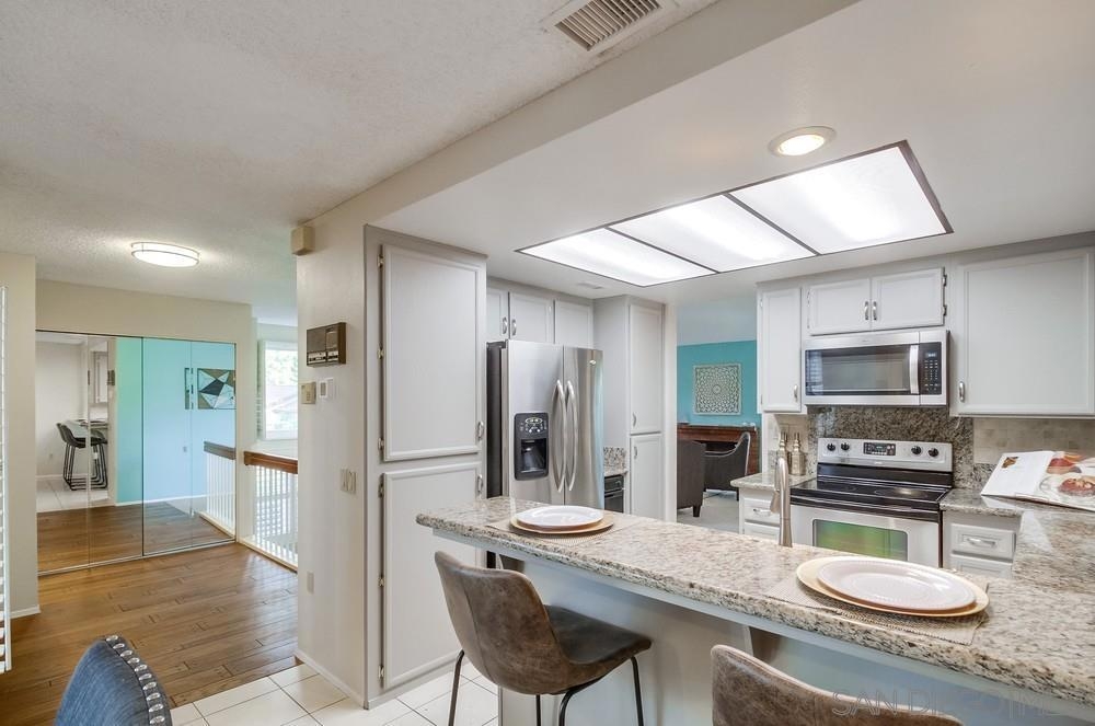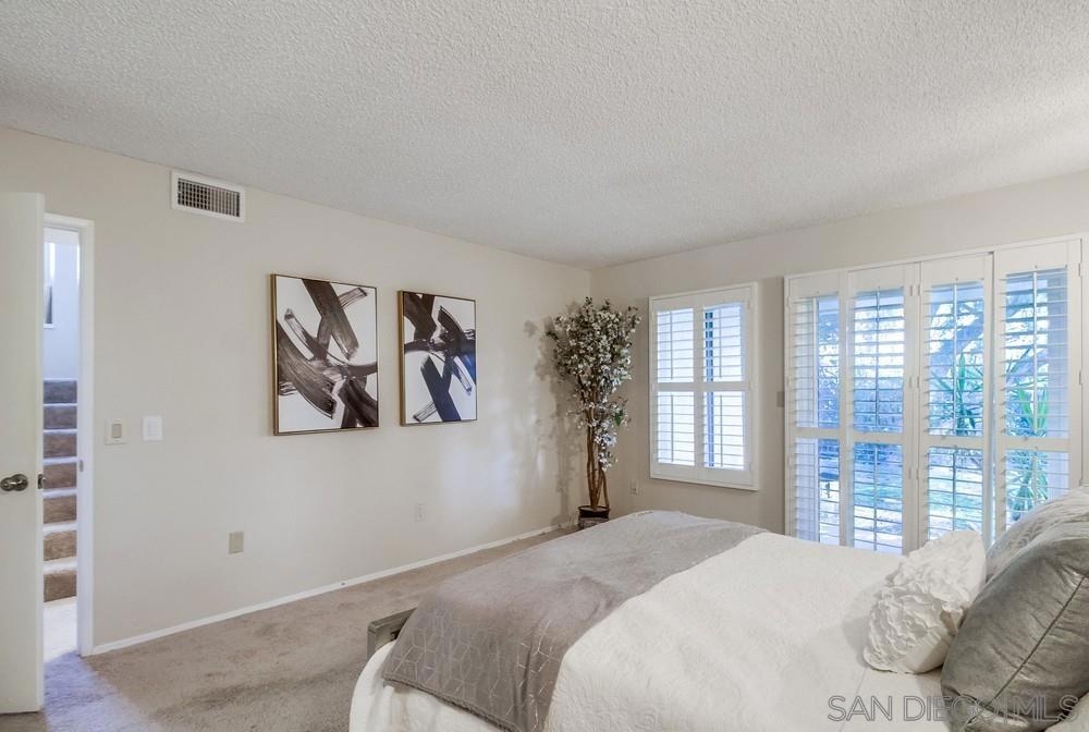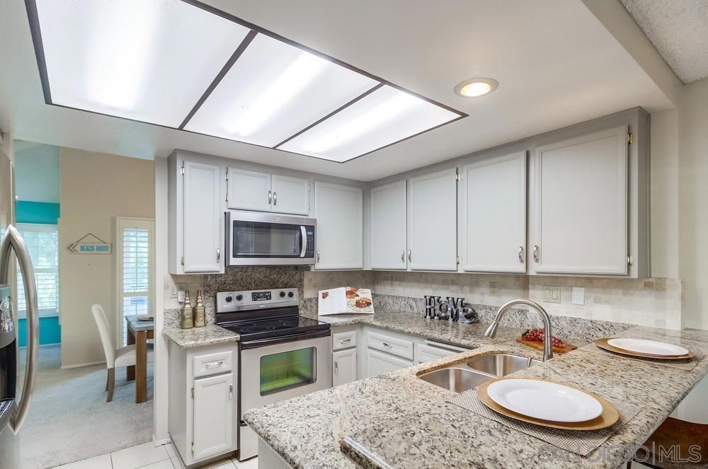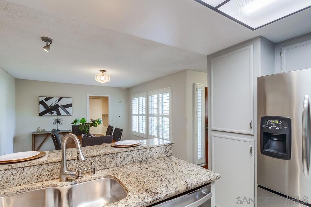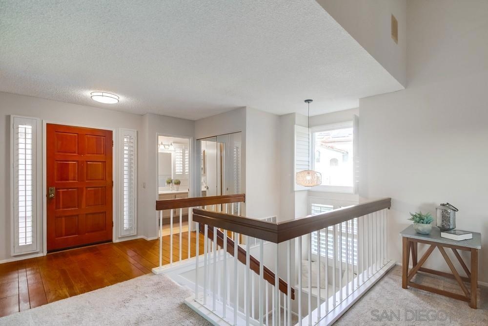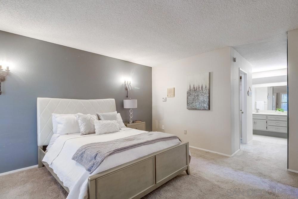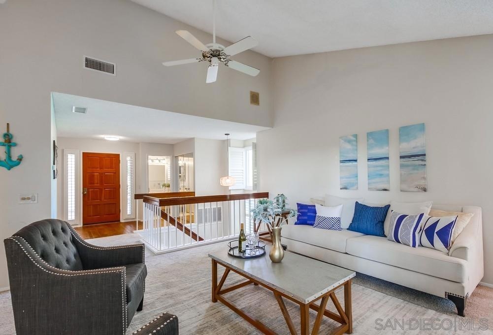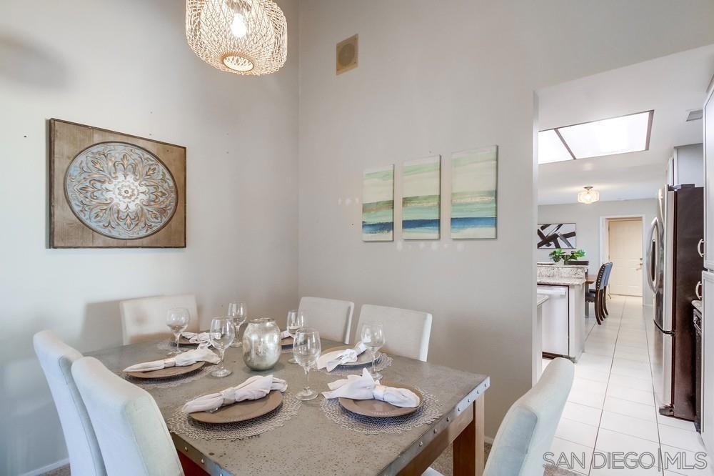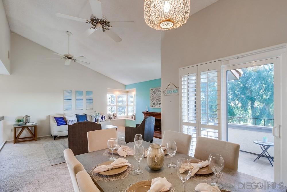 Rarely available END-UNIT townhome! The largest floor plan in one of the best locations in the highly sought after Charter Point community. Vaulted ceilings, large dining area, an optional office space and sunset views from the balcony! This ideal 3 bedroom 2.5 bath is in move-in ready condition and will check everything on your list. Direct access, attached 2 car garage. Separate laundry room off the kitchen. The gated front patio is perfect for entertaining. Downstairs you will find 3 bedrooms including a spacious primary retreat with a walk-in closet, en-suite bathroom and private patio overlooking a lovely shaded greenbelt. No neighbors behind you! An ideal space for kids to play or walk your pets. VA & FHA approved. Convenient location just around the corner from Southwestern College, and walking distance to many shops and restaurants.