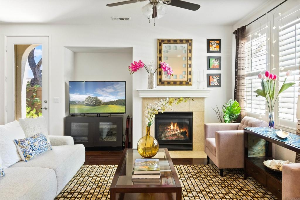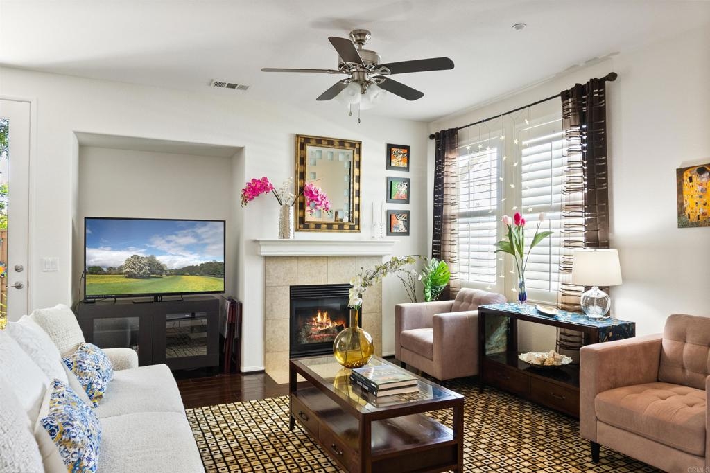 Welcome to your new home! This modern and spacious property boasts four large bedrooms and three full bathrooms, spread across 1,891 sq feet of gorgeous living space, built in 2007. Situated in a highly sought-after location, you'll enjoy a quick walk to shopping, top-rated schools, and fantastic restaurants. The convenience continues with easy access to Freeway 125, the Otay Ranch Shopping Center, and a movie theater. Step inside the beautiful living room, complete with a cozy fireplace, and unwind after a long day on your own side patio. The stunning kitchen features granite countertops, stainless steel appliances, and ample cabinet space. The first floor includes a large bedroom with an attached full bathroom for added convenience. Upstairs, the private master-suite boasts a spacious walk-in closet and a full en-suite bath. This corner lot offers exceptional privacy, with no neighbors above or on the side. Guests will have access to convenient parking just outside the building or directly across the street, while you'll have the luxury of an attached two-car garage. The community provides a peaceful winding walkway that is family and pet-friendly, along with an array of luxury amenities, including two elegant clubhouses, a full gym, and sparkling pools for your family's enjoyment. Don't miss the opportunity to explore this exceptional property! Contact the agent today to schedule a tour. Note: The property features a leased solar system by Sunrun. OPEN HOUSE August Saturday 12 and Sunday 13, 2023.