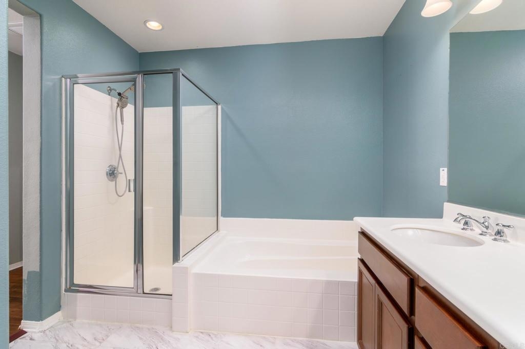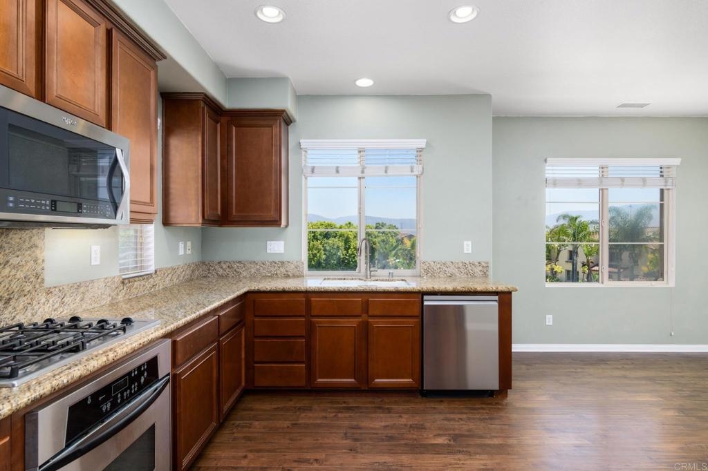 Welcome to this beautifully maintained townhome in the desirable Cordova community of Winding Walk in Otay Ranch. This versatile floor plan features 3 bedrooms and 3 full bathrooms, including a convenient first-floor bedroom and bath—perfect for guests, multigenerational living, or a home office. Upstairs, you’ll find two spacious bedrooms with en-suite bathrooms, including a primary suite with expansive views and a peaceful retreat-like ambiance. The upgraded kitchen offers stainless steel appliances, ample cabinet space, and opens to the dining and living areas, ideal for entertaining. Enjoy a private patio off the main living space, plus direct access to an oversized 2-car garage. Additional features include wood flooring throughout, a dedicated laundry room, and central A/C. Cordova at Winding Walk offers resort-style amenities including a pool, spa, clubhouse, playground, and access to top-rated schools, parks, and Otay Ranch Town Center. Convenient freeway access, shopping, dining, and entertainment are just minutes away. Move-in ready and full of modern comfort—don’t miss this incredible opportunity!