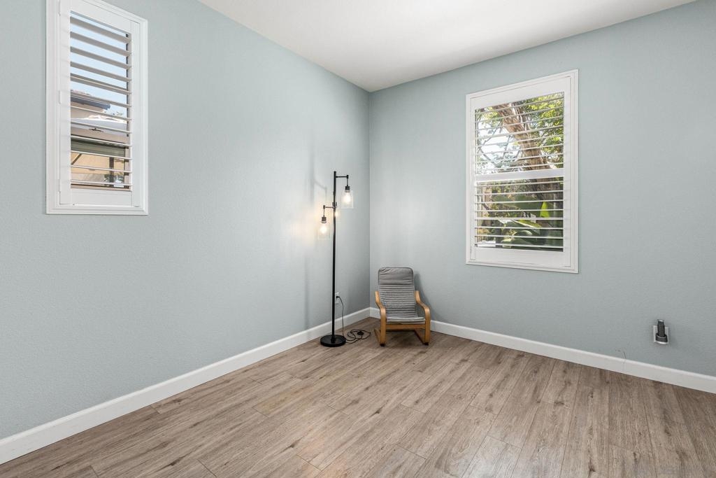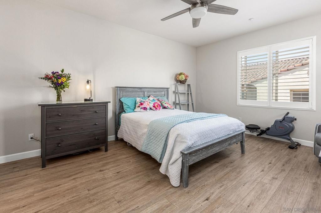 Welcome to this charming home located on a corner lot in a desirable community in the highly desired Winding Walk community! This well-maintained property offers abundant natural light and spacious living areas, making it ideal for both relaxation and entertainment. The home features a large downstairs bedroom with a full bath, offering flexibility for use as an office, guest room, or private suite for family members. The stylish interior boasts beautiful wood-like flooring throughout the bedrooms, stairs, and hallways, with elegant travertine flooring in the downstairs living area, kitchen, and bathroom. The kitchen is equipped with modern appliances, providing both functionality and convenience. Enjoy designer paint accents throughout the home and wooden shutters that add to the elegant, light-filled spaces. The spacious primary bedroom features an en-suite bathroom and a walk-in closet, offering privacy and ample storage. Step outside to your own fenced-in patio, perfect for relaxing or entertaining. Located in a quiet, well-maintained community with easy access to shopping, dining, schools, and parks, this home is a perfect blend of comfort, style, and convenience. Don't miss the opportunity to make this beautiful home yours!