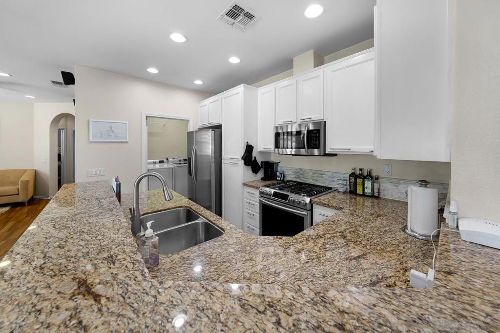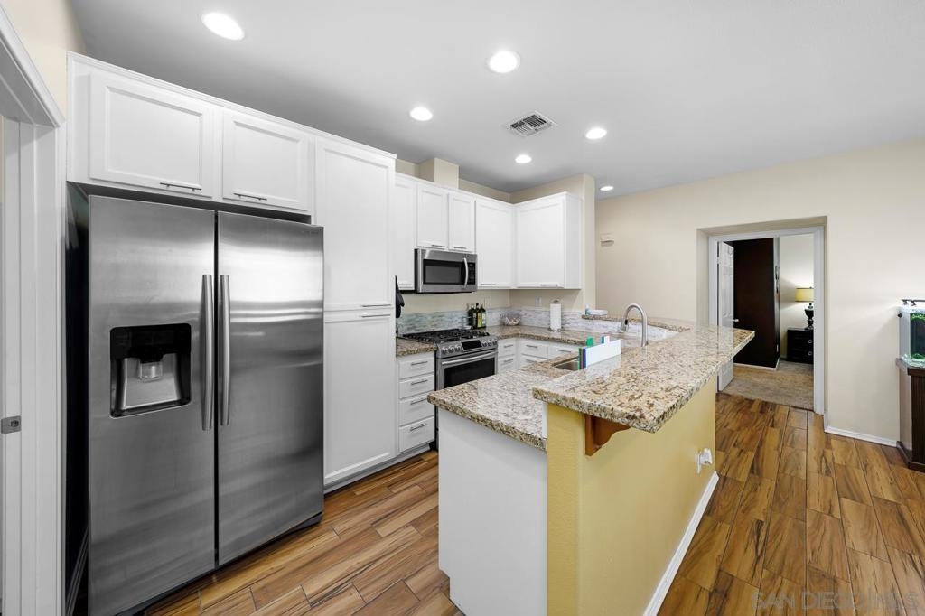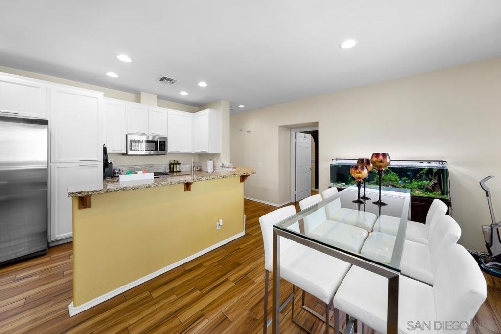 Welcome to The Summit at Eastlake! This stunning 3-bedroom, 2-bathroom condo located in the vibrant community of Eastlake, Chula Vista, offers a perfect blend of comfort and luxury living. Step into this meticulously maintained home featuring wood-like tile flooring, elegant shutter blinds, and recessed lighting in the spacious living room. The chef-inspired kitchen boasts granite countertops, shaker cabinets, and stainless steel appliances, creating an ideal space for culinary enthusiasts. Enjoy cozy evenings by the fireplace in the living room or retreat to the comfort of the generously sized bedrooms featuring ceiling fans and ample closet space. The master suite offers a private sanctuary with its own en-suite bathroom and walk-in closet. With modern amenities including A/C and a 2-car garage, this condo provides convenience and functionality. Plus, residents have access to a range of desirable complex amenities such as a pool/spa, BBQ area, playground, and gym, perfect for relaxation and recreation. Located just minutes away from nearby trails, mountains, Lower Otay Lake, and numerous parks, outdoor enthusiasts will delight in the abundance of recreational activities. The convenience of the 125 freeway and proximity to Otay Ranch Town Center ensure easy access to shopping, dining, and entertainment options. Don't miss out on this opportunity to experience resort-style living in the heart of Eastlake.