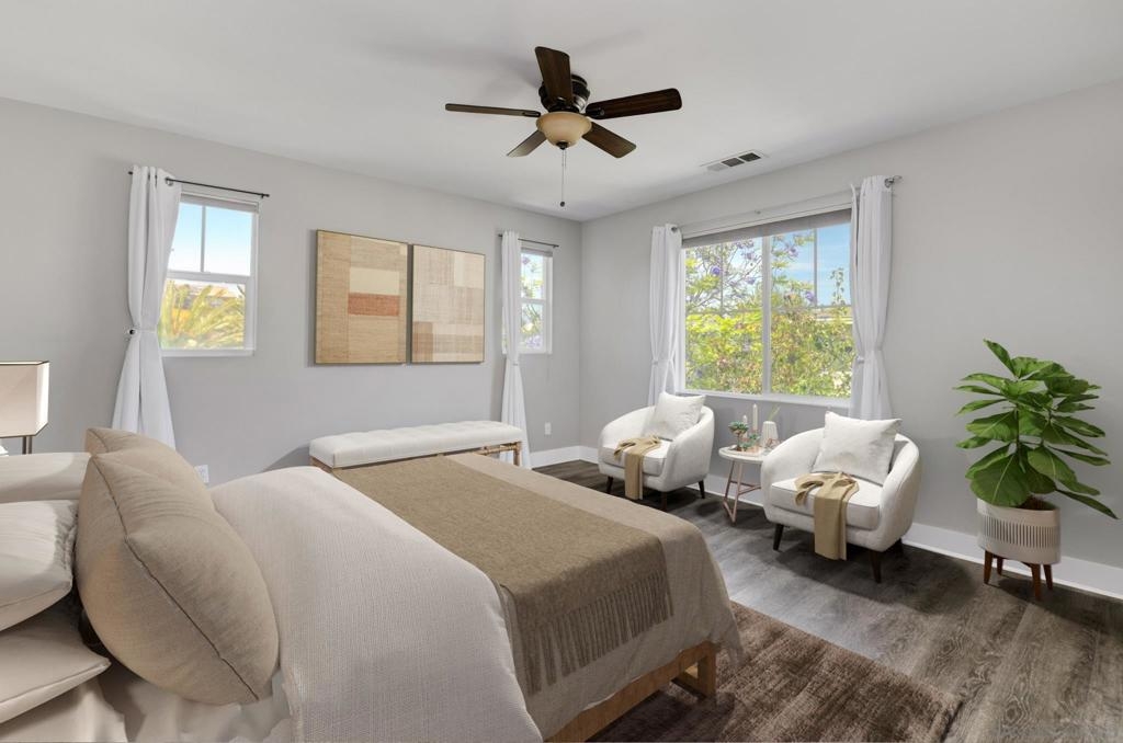 VA Approved! Expansive Townhome Elevated Corner Lot with Tree Views Downstairs +Upstairs from each room. Lives like a Detached home, with double living rooms, Custom Renovated Quartzite Marble Countertop-Open Kitchen, with/extra storage cabinets. LVP flooring top to bottom, double wide premium baseboards. 2 Walk in Closets, Primary w/Custom Shelving- Brand New HVAC/Water Heater. EV Charger-Solar Transfer Ready. Private Patio area for indoor/outdoor entertaining. Walkable Enchanting Neighborhood. Top Rated Elementary School across the street. 2 Car Garage +2 Permitted parking spots available. HOA Amenities include Multiple Pools, Playcourts, Children's parks/Gym very well appointed. These townhouses rarely come on the market, this is your opportunity to make this Luxury Low Maintenance Gorgeous Townhome yours!