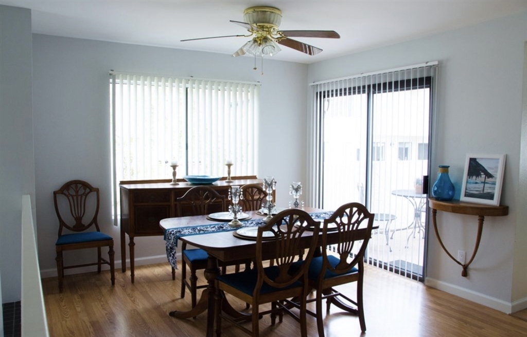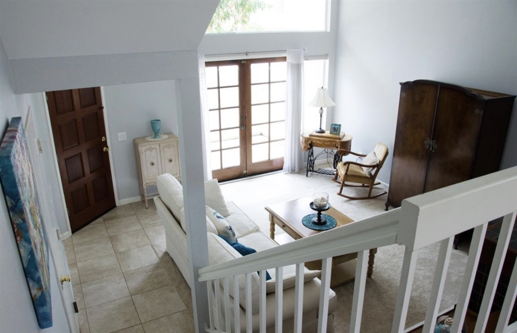 Wow! Beautiful Townhome in a Private Location Situated In The Quiet Part of the Complex w/ocean breeze. Away From The Street-End Unit! Split-level design w/vaulted ceilings, cozy fireplace, and custom stained glass art piece in window spare room, 3/4' Hardwood floors upstairs & Bright and airy front room with big window above French Doors in Living Room - Separate Dining Area and Sunny Kitchen w/Breakfast Area, New Built-in Microwave & Gas Stove! Two patios for Entertaining-Attached 2 car Garage. Neighborhoods: Chula Vista Trails Equipment: Dryer,Garage Door Opener, Washer Other Fees: 0 Sewer: Sewer Connected Topography: LL