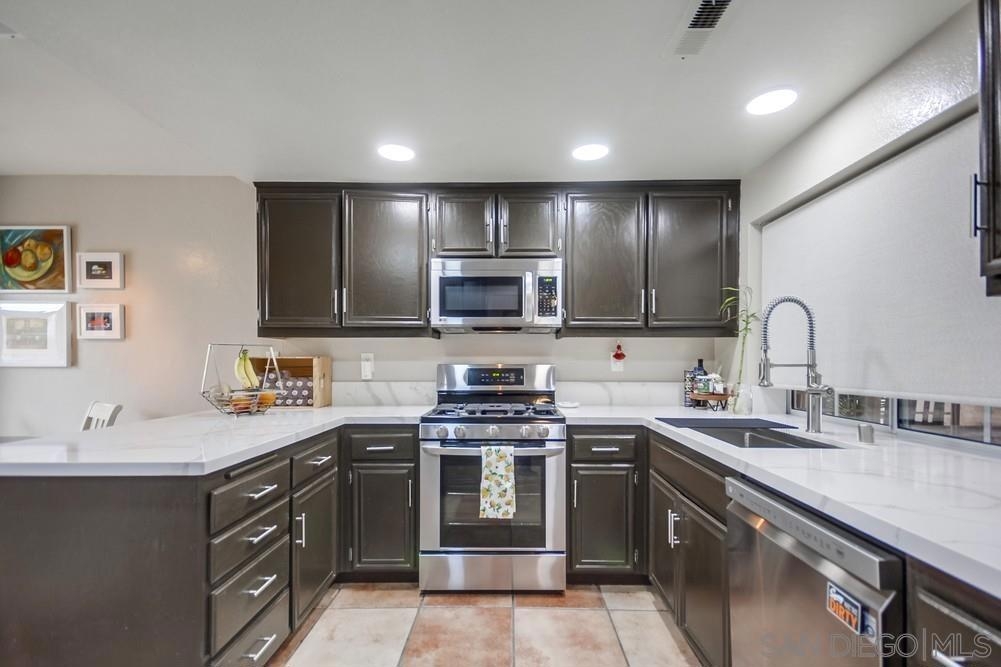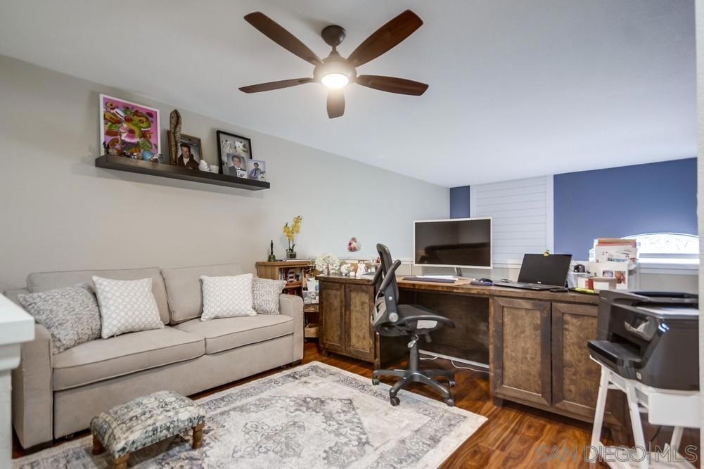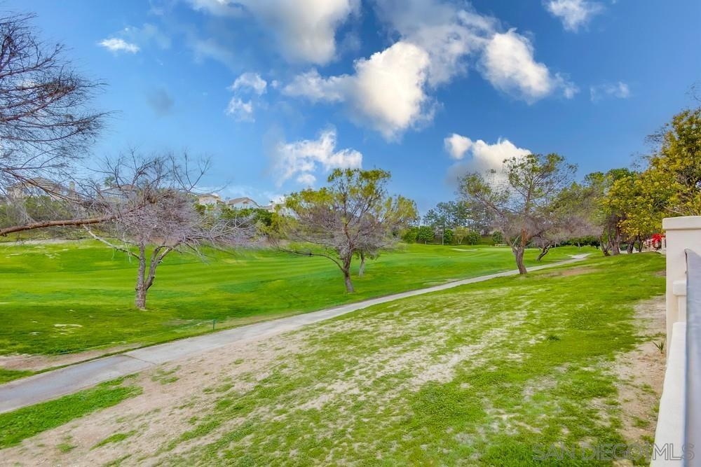 GOLF COURSE VIEWS!!! Amazing golf course views from living area, back patio and master bedroom! High Ceiling in the living room with view to golf. Community swimming pool and jacuzzi just a short walk away. Great Location in complex with view to the greens, 2 parking garage. Kitchen with new quartz counter tops. Roller Shades in some windows. Remodeled Master Bedroom. Patio Cover. Ceiling fans in Bedrooms. Built in Desk room can be Third Bedroom.