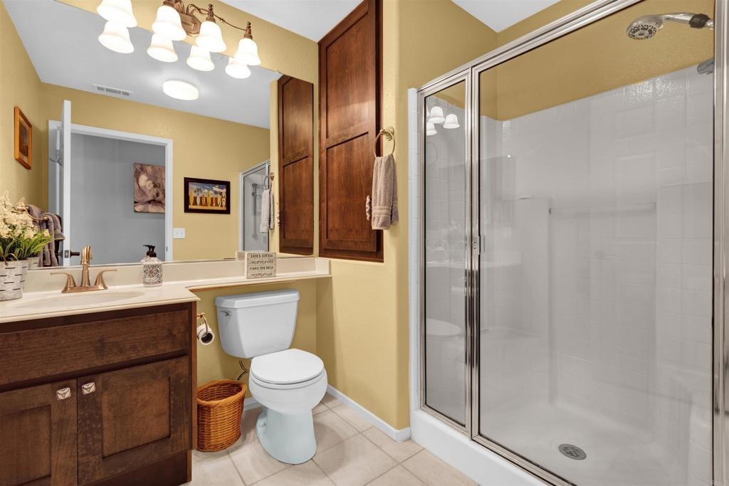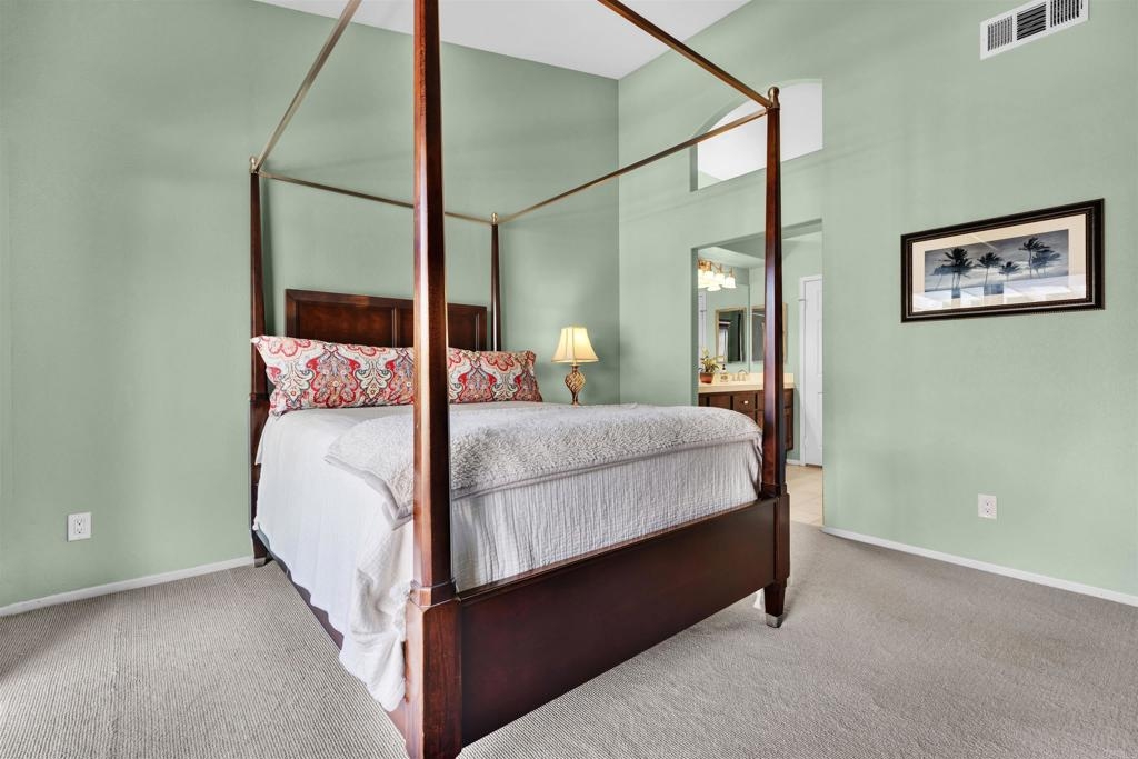 Welcome to the perfect retreat. This charming single-story condo offers a serene living experience, boasting a prime location on a well maintained championship golf course. With 2 bedrooms, 2 baths, and a host of delightful features, this property is a true gem. Step inside, and you are greeted by the grandeur of vaulted ceilings, wood or gas burning fireplace, newer kitchen, upgraded SS appliances, quartz counter tops and limestone tile floor. Natural light spills effortlessly into every room, creating a warm and inviting atmosphere. The condo is designed to cater to your every need, with two generously-sized bedrooms. Each bathroom offers modern fixtures and a soothing aesthetic. Notable features of this exceptional condo include plantation shutters, adding an elegant touch to every window. These shutters not only enhance privacy but also allow for precise control of natural light, giving you the flexibility to create the desired ambiance in every room. The two-car garage offers cabinets and pull down ladder for attic access and additional storage space. The real highlight of this property, is its prime location on the golf course offering breathtaking views of lush green fairways and rolling landscapes right at your backyard. Whether you're a seasoned golfer or simply appreciate the serenity and beauty that comes with living alongside a golf course, this condo offers an unparalleled lifestyle opportunity. As an added bonus, EastLake II is part of a master planned community which offers 3 pools, 2 parks, 5 tennis courts, pickleball, 2 basketball courts & 2 sand volleyball areas. Don't miss the chance to call this place home – schedule a showing today and experience the magic for yourself!