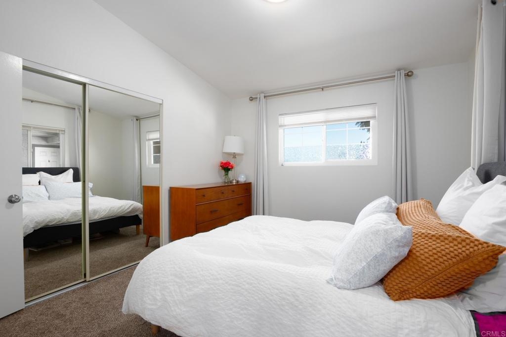 This unit is a corner unit on the top floor. The bedrooms do not share walls with each other or any other units. You have two parking spots. One a designated enclosed garage space that's next to the gated entrance for easy in and out access. The other parking spot is in the gated parking lot is gated with only a remote key entrance. Beautiful and move-in-ready, this second-story 2-bedroom, 2-bath condo offers a perfect blend of comfort and style. Enjoy the private balcony and a central location in the heart of Chula Vista, close to everything you need! Close to new Gaylord community, transportation, mall, shopping, schools, freeways...The kitchen has been tastefully upgraded with modern white shaker cabinets and sleek quartz countertops. Both bathrooms have been remodeled with custom tile work, adding a touch of luxury. The home features newer flooring throughout, a recently installed AC system, and double-pane noise-reduction windows. Smart home upgrades include a RING video doorbell, an electronic wired deadbolt with an alarm, a Smart Eco bee thermostat, and a new garage door opener. This home truly has it all and is ready for you to move in and enjoy!
