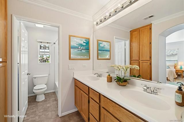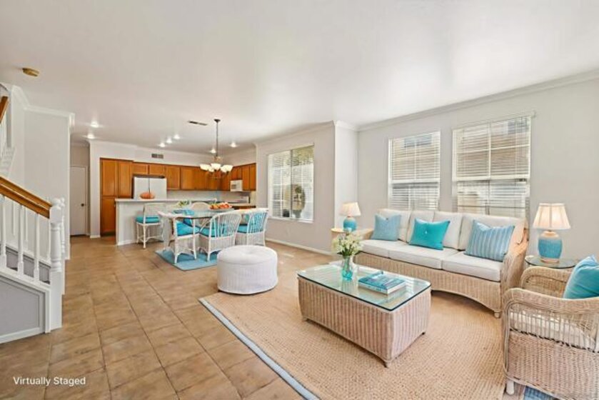 LARGE 3 BEDROOM & 2.5 BATHROOM HOME * NEW PAINT AND CARPET * 2 CAR ATTACHED GARAGE Welcome to this beautiful home in the highly sought-after, gated Gold Rush community of Otay Ranch. Ideally situated in a great neighborhood, this home offers the ideal blend of comfort, convenience, and modern living. Enjoy being just minutes away from top-rated schools, shopping, dining, and the Otay Ranch Town Center, as well as easy access to CA-125 and public transportation. This spacious 3-bedroom home features an open floor plan with tile flooring throughout the downstairs living area and new carpet upstairs. The bright and inviting kitchen offers plenty of cabinet space, ample counters, and a large center island, making it perfect for both cooking and entertaining. This home has Central heating and air conditioning and crown molding throughout. The master suite is a private retreat with dual sinks, a walk-in closet, and a relaxing ensuite bathroom. Enjoy your large front patio to unwind outdoors or entertain guests. The attached full-size two-car garage provides convenient access and extra storage, and additional street parking is available nearby. Gold Rush residents enjoy resort-style amenities, including a sparkling community pool, spa, parks, playgrounds, and beautifully maintained grounds. Move-in ready and freshly painted home also offers the perfect opportunity to personalize and make it truly your own. Property is virtually staged.