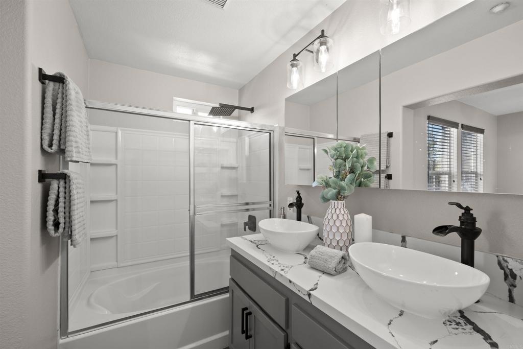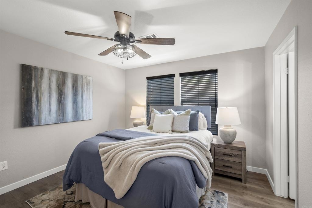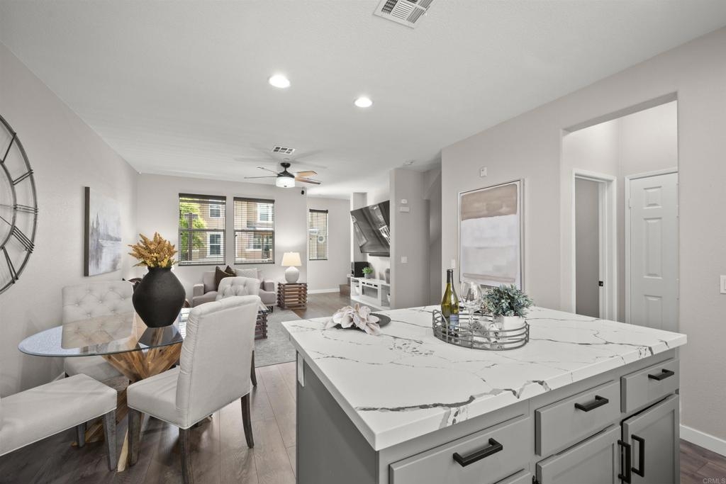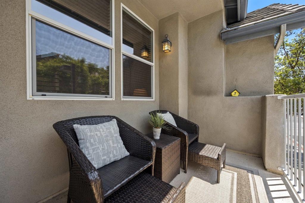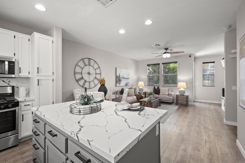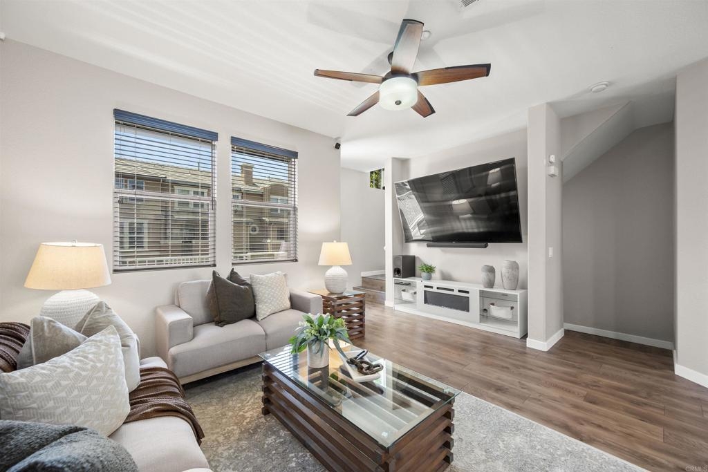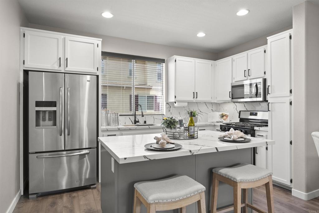 Charming Townhouse in Greystone at Eastlake Vistas. This amazing move-in ready townhouse features 3 bedrooms, 2.5 bathrooms, approx. 1332 sqft., with luxury vinyl flooring throughtout. The first floor bedroom offers a flexible space, perfect for a home office or guest bedroom, with direct access to two car garage enhanced by Swisstrax flooring. On second level, enjoy open floor, including modern kitchen with an island, stainless steel appliances and custom quartz countertops. The dining area and great room provide seamless access to a balcony, The third floor host two master suites, each with updated bathrooms featuring new light fixtures and quarts counterops. This property is equipped with Nest Thermostat, Eufy Security Cameras and Eufy Smart Lock. Enjoy all the Amenities of Greystone and Community of Eastlake Vistas has to offer. Close to high rated schools, Olympic Training Center, Shopping, Restaurant and Toll Road 125, Buyers and buyer's agent to verify everything herein before close of escrow.