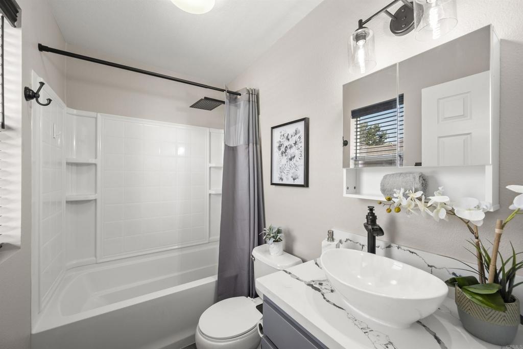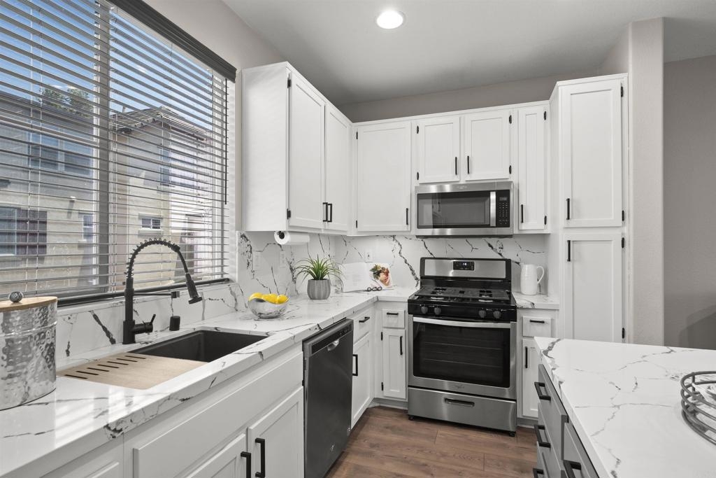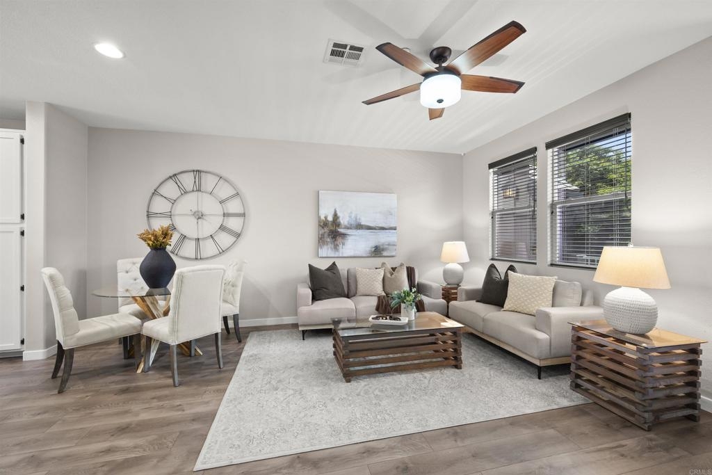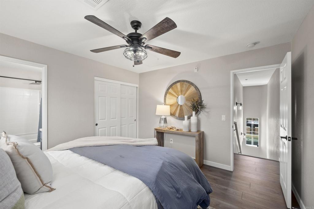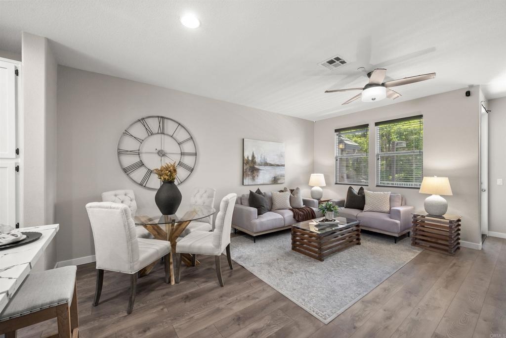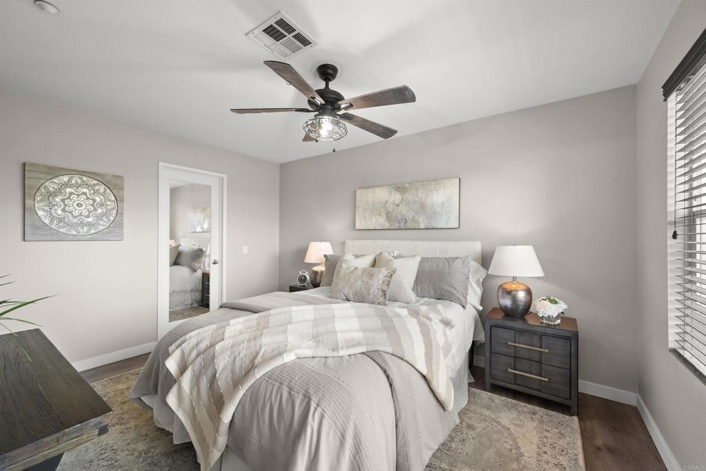 Charming Townhouse in Greystone at Eastlake Vistas. This amazing move-in ready townhouse features 3 bedrooms, 2.5 bathrooms, approx. 1332 sqft., with luxury vinyl flooring throughtout. The first floor bedroom offers a flexible space, perfect for a home office or guest bedroom, with direct access to two car garage enhanced by Swisstrax flooring. On second level, enjoy open floor, including modern kitchen with an island, stainless steel appliances and custom quartz countertops. The dining area and great room provide seamless access to a balcony, The third floor host two master suites, each with updated bathrooms featuring new light fixtures and quarts counterops. This property is equipped with Nest Thermostat, Eufy Security Cameras and Eufy Smart Lock. Enjoy all the Amenities of Greystone and Community of Eastlake Vistas has to offer. Close to high rated schools, Olympic Training Center, Shopping, Restaurant and Toll Road 125, Buyers and buyer's agent to verify everything herein before close of escrow.