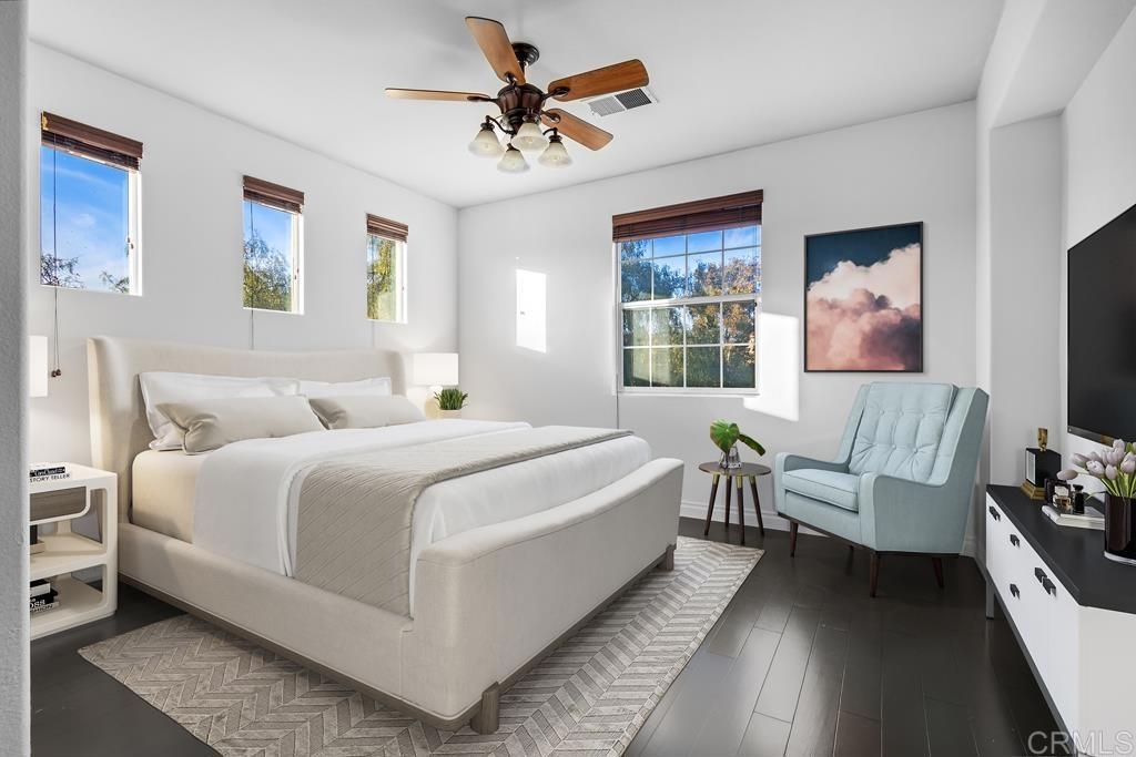 Introducing a stunning 3-bedroom, 2.5-bathroom home nestled in the desirable Hearthstone Village Complex in Otay Ranch. This modern residence with a 2-car garage and plenty of storage space offers a perfect blend of style, comfort, and functionality. It has a contemporary design that emphasizes an open floor concept of the living area with a fireplace, the dining area, the kitchen and an inviting patio. The spacious kitchen is equipped with granite countertops and stainless-steel appliances highly functional for cooking. The large primary suite boasts an en-suite bathroom and a walk-in-closet. The additional bedrooms are generously sized, providing flexibility in its usage. Whether you're enjoying a quiet evening on the top floor or entertaining guests on the main level, each space is designed to meet the diverse needs of your lifestyle. Located in the sought-after Otay Ranch community, you'll have access to top-rated schools, parks, shopping centers, and recreational amenities. Embrace the Southern California lifestyle in this meticulously crafted residence that combines modern elegance with the warmth of a welcoming home.
