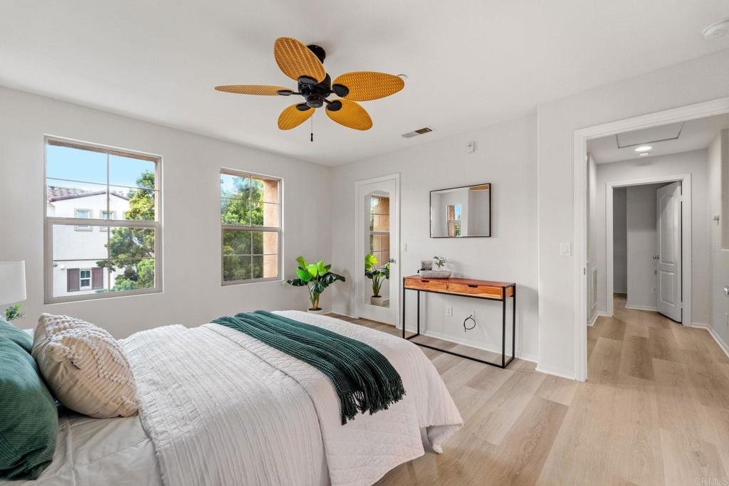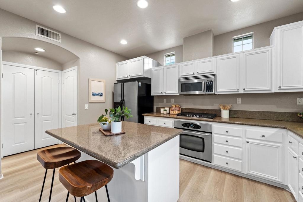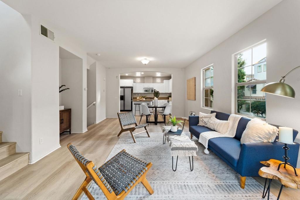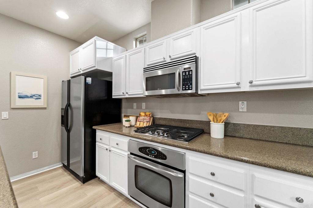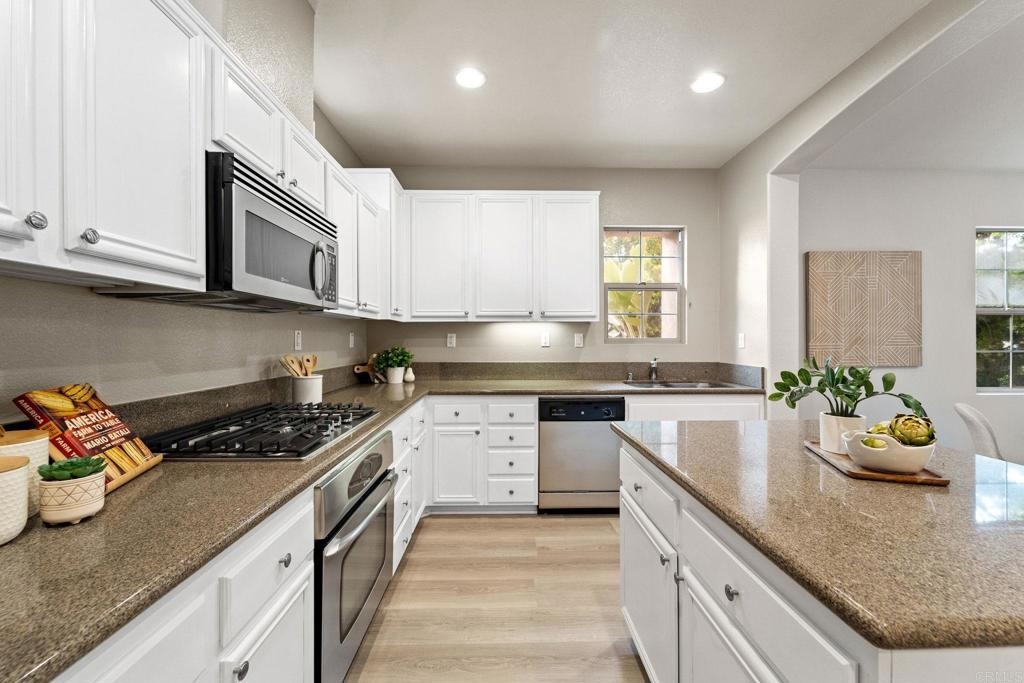 WOW- great opportunity to buy! This 3 bedroom 2.5 bath condo in the Otay Ranch community of Hearthstone has over 1500 SF of living space including one bedroom and full bath on the first floor! Enjoy brand new luxury vinyl plank flooring and paint throughout, a spacious dream kitchen with quartz counters and stainless steel appliances all included! Home also includes full size washer and dryer, central AC, and community pool access. The balcony off the Great Room is perfect for enjoying the So Cal weather and the 2-car attached garage fits 2 vehicles with room for more storage.