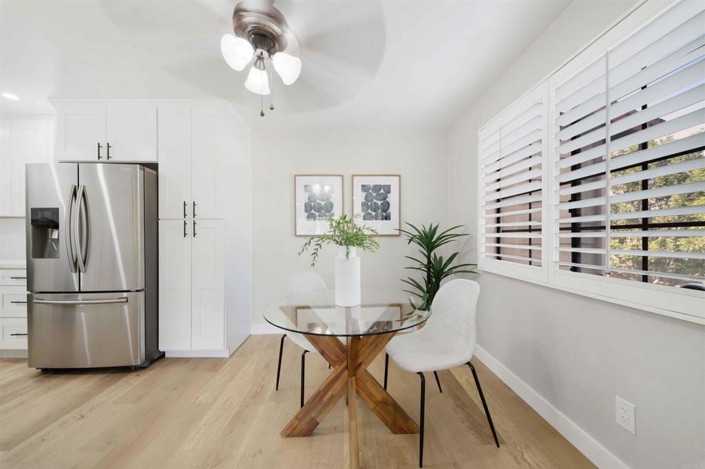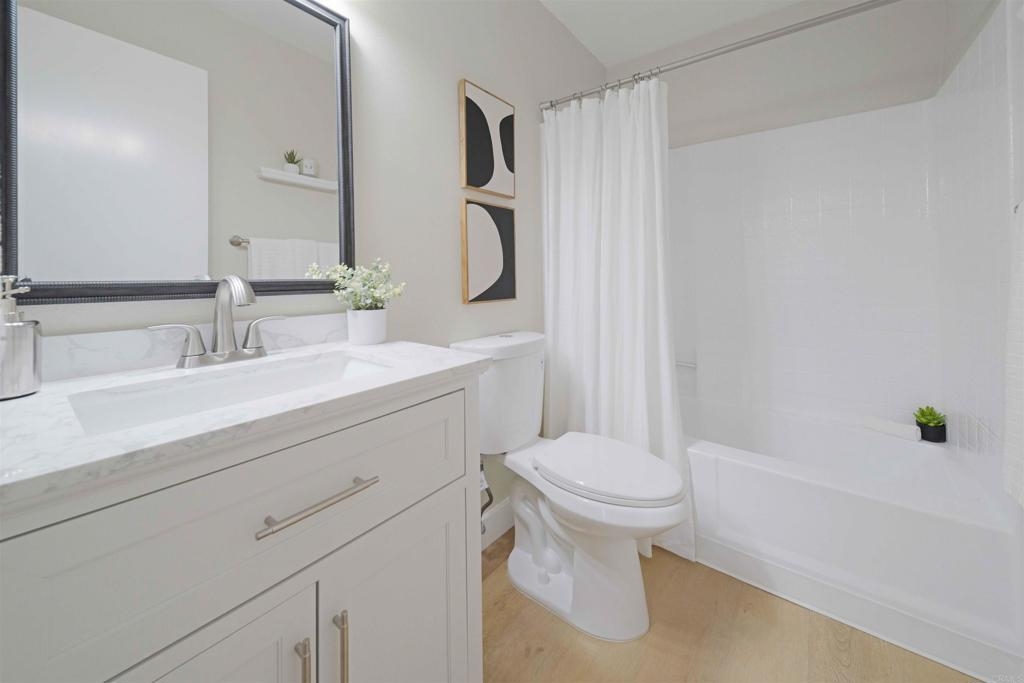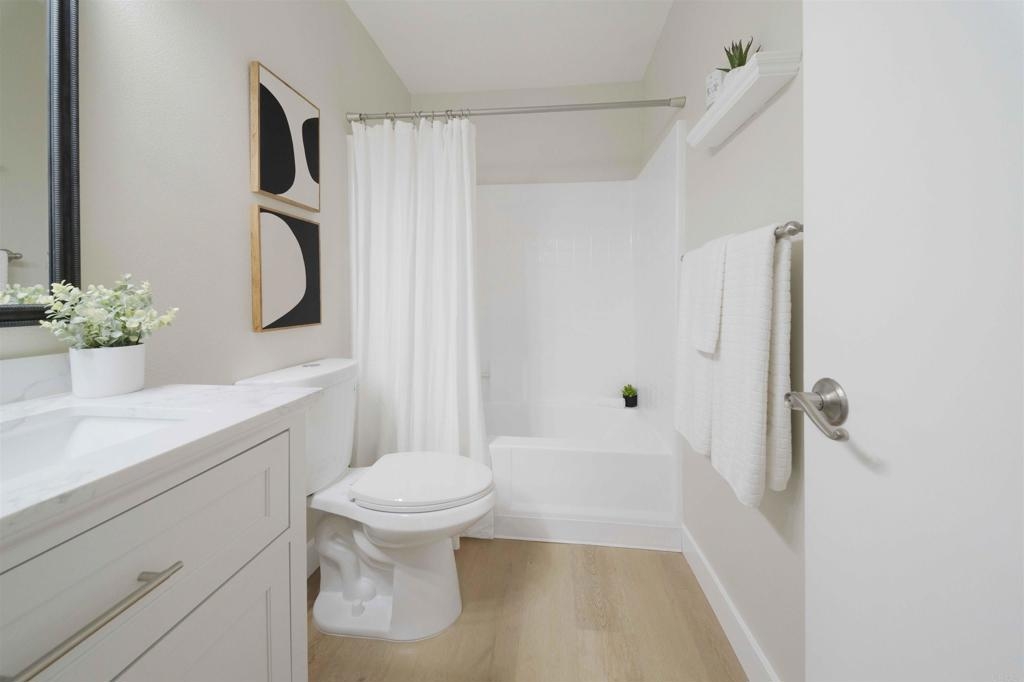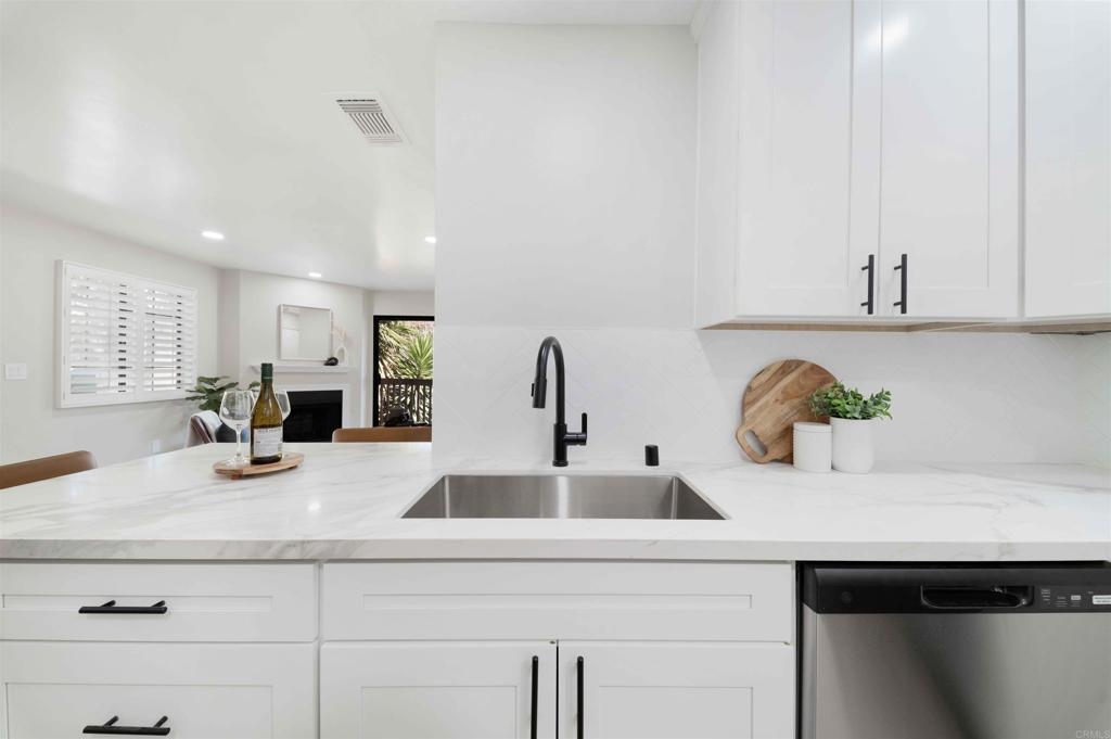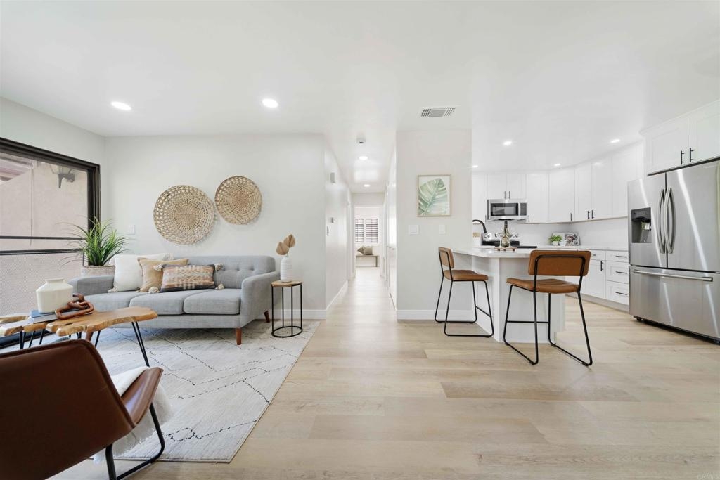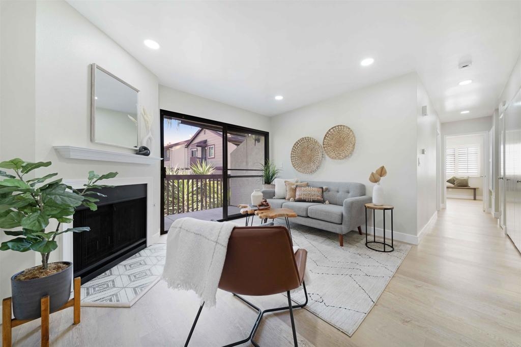 Located in a quiet Chula Vista condominium community, this move-in-ready unit has been thoughtfully remodeled with modern finishes throughout. The brand-new kitchen features quartz countertops, tile backsplash, stainless steel appliances, updated fixtures, and clean white cabinetry. Luxury vinyl plank flooring runs throughout the home, complemented by new recessed lighting, fresh paint, and renovated bathrooms. The living area includes a cozy fireplace and opens to a private outdoor balcony. A full-size in-unit laundry closet adds convenience. Parking includes a private garage with a newer door and opener, two additional in complex spaces, and plenty of nearby street parking. complex amenities include a pool and spa area, and is just minutes from the 805 freeway, convenience stores, public transit, and local restaurant options. Ideal for first-time buyers or investors, this turnkey property offers solid rental potential in a well-connected neighborhood.