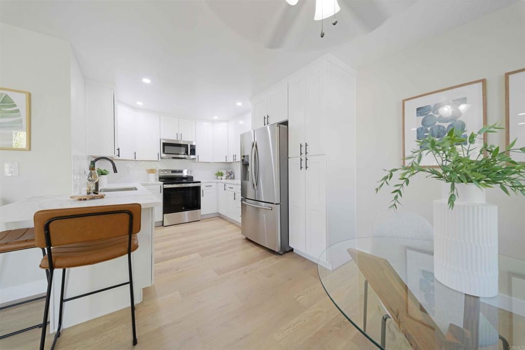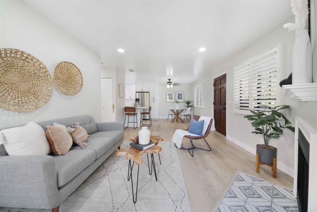 Located in a quiet Chula Vista condominium community, this move-in-ready unit has been thoughtfully remodeled with modern finishes throughout. The brand-new kitchen features quartz countertops, tile backsplash, stainless steel appliances, updated fixtures, and clean white cabinetry. Luxury vinyl plank flooring runs throughout the home, complemented by new recessed lighting, fresh paint, and renovated bathrooms. The living area includes a cozy fireplace and opens to a private outdoor balcony. A full-size in-unit laundry closet adds convenience. Parking includes a private garage with a newer door and opener, two additional in complex spaces, and plenty of nearby street parking. complex amenities include a pool and spa area, and is just minutes from the 805 freeway, convenience stores, public transit, and local restaurant options. Ideal for first-time buyers or investors, this turnkey property offers solid rental potential in a well-connected neighborhood.