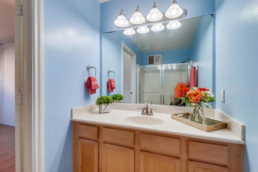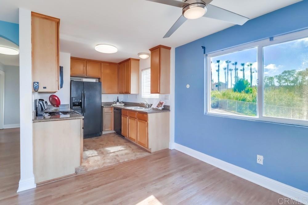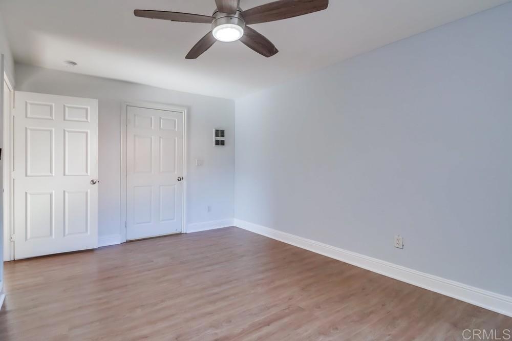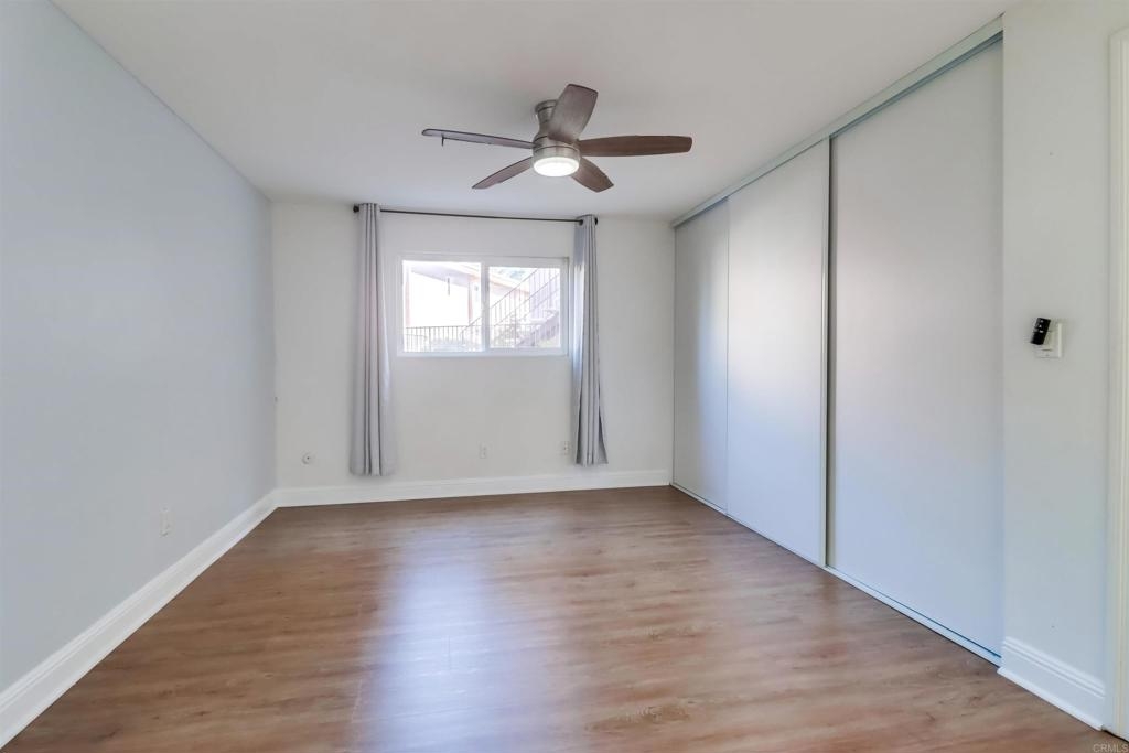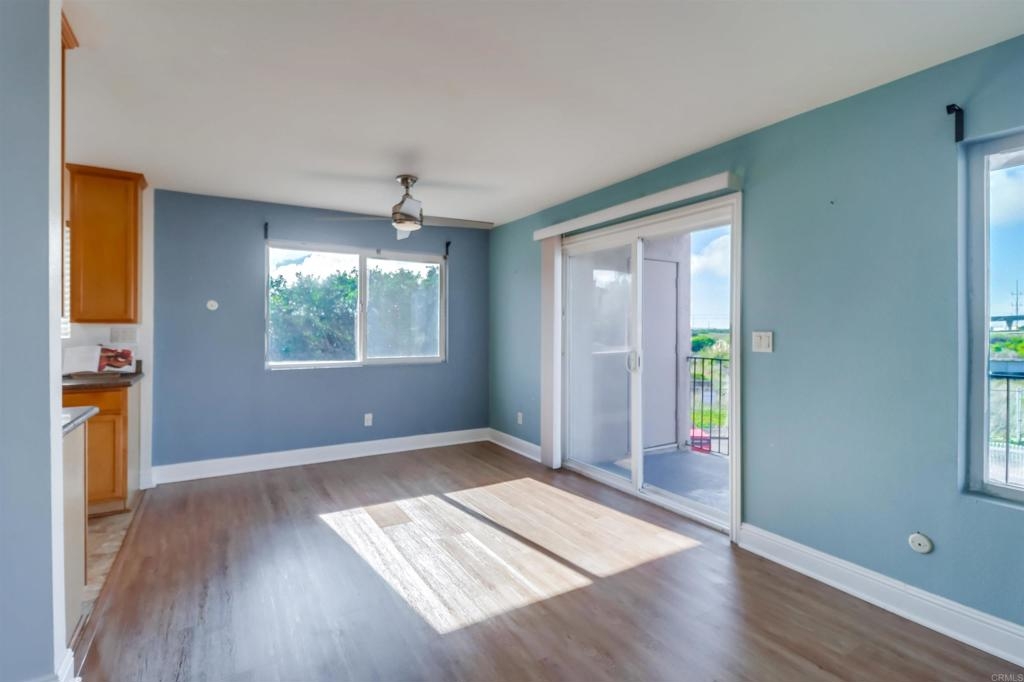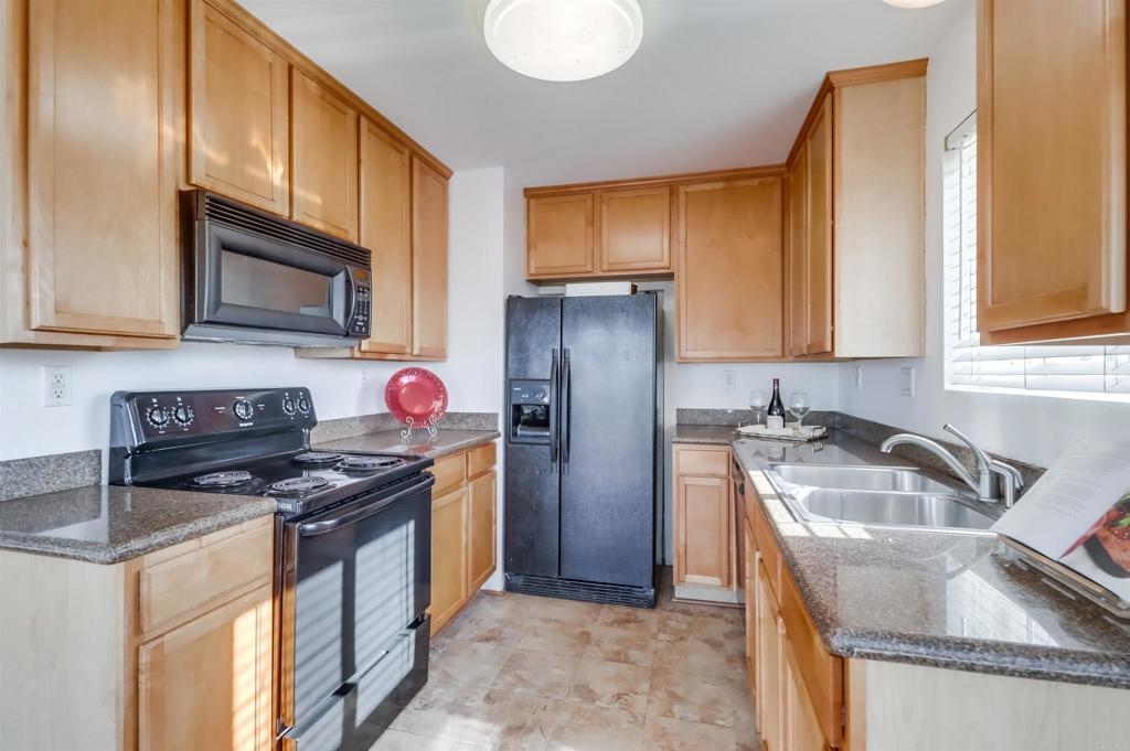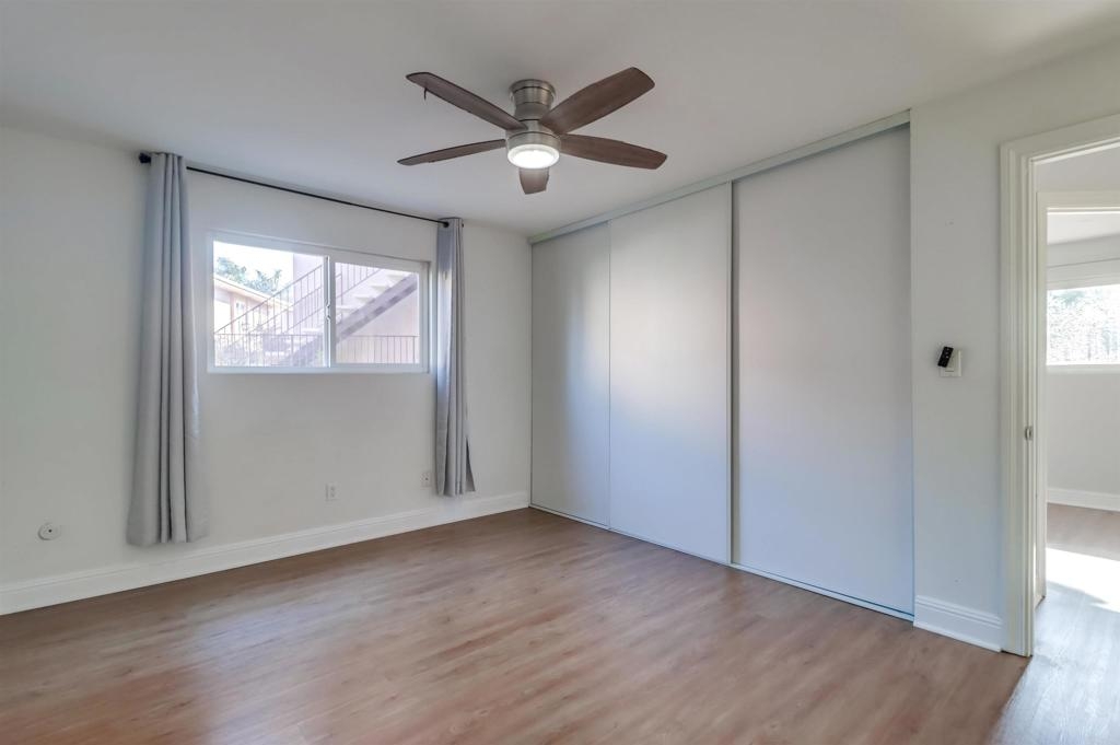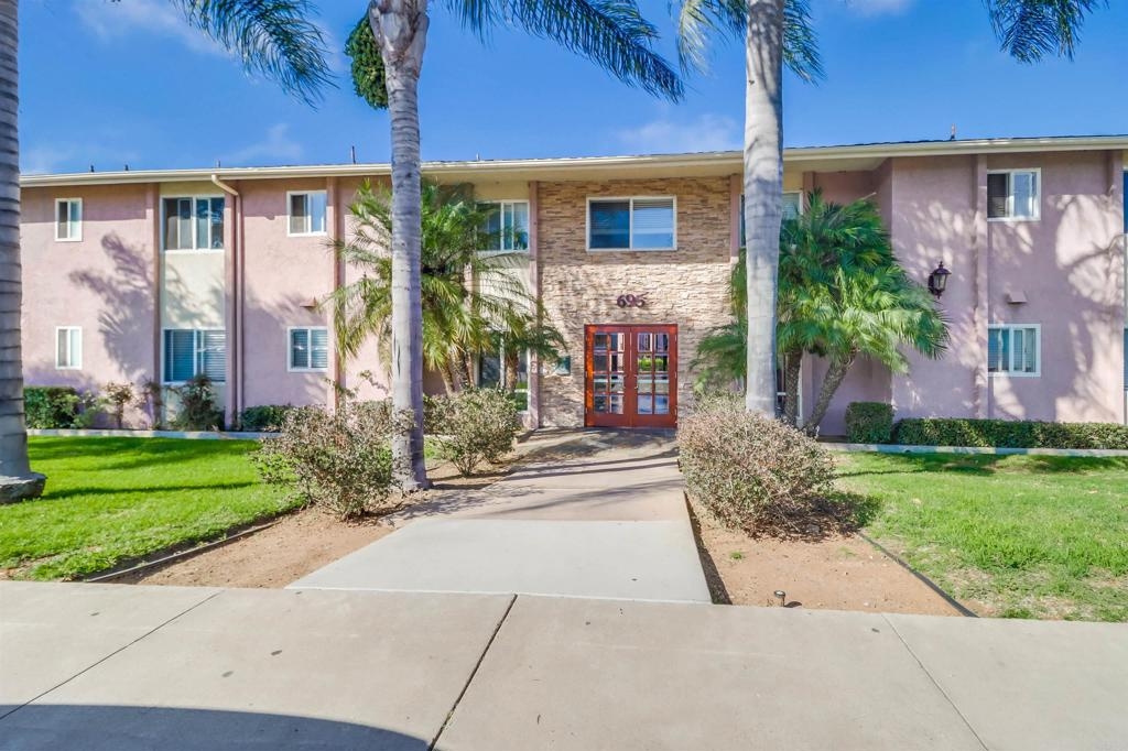 Charming downstairs end unit in the private community of Las Palmas. Property features open floor plan with natural light and cool breeze from living area and balcony. New flooring in living room, dining room, hallway, and bedrooms. Master bedroom with full bath and a large closet. Second bedroom with walk-in-closet. Dual pane windows. Kitchen granite countertops. One car garage. Enjoy breathtaking sunsets from the spacious balcony. Central location close to shopping centers, schools, parks, restaurants, and easy freeway access. This is a must see unit!