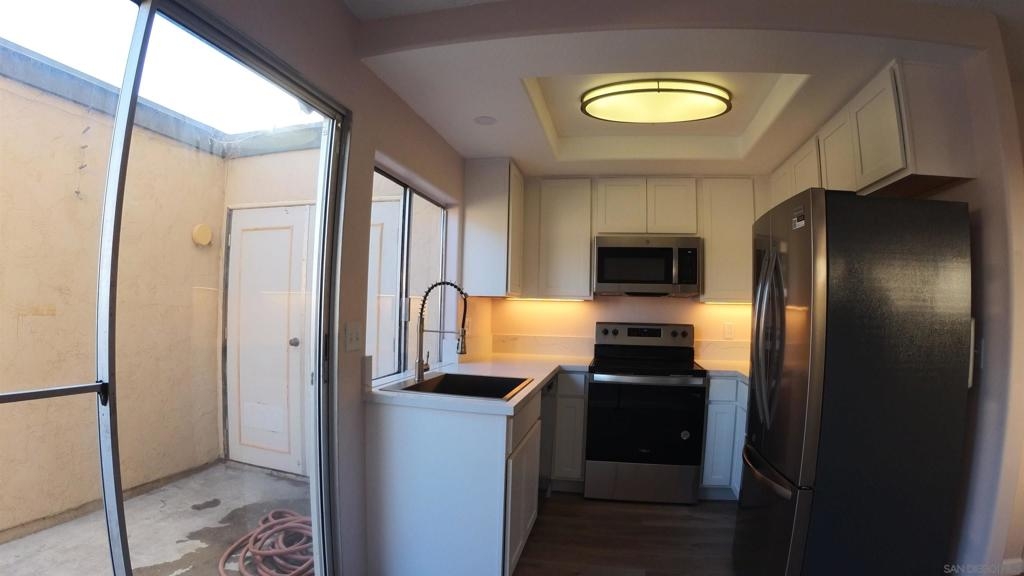 Completely upgraded townhouse for your buyer. Downstairs all new luxury vinyl flooring. Full kitchen remodel with new appliances, cabinets, countertops and stainless steel sink. Direct access to private patio and to outside laundry. Half bath upgraded as well. Three bedrooms upstairs carpeted along with stairs. Updated master bathroom. New window coverings, raised panel doors, hardware. Storage in carport and one extra private parking. Unit located to rear of the complex. Complex not currently VA approved. Will entertain reasonable offers.