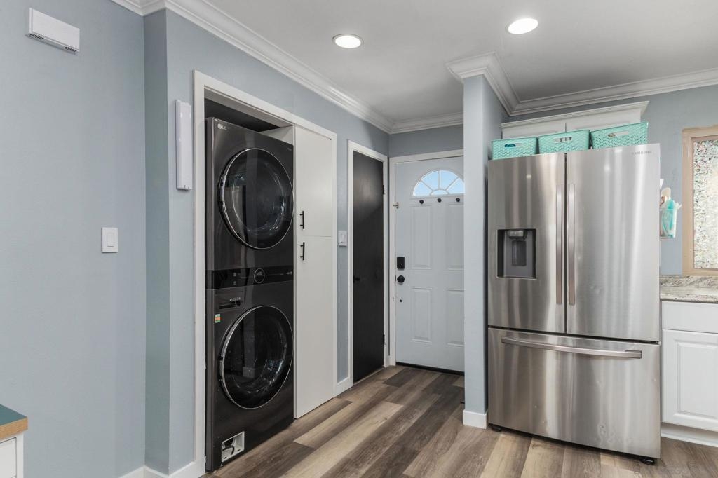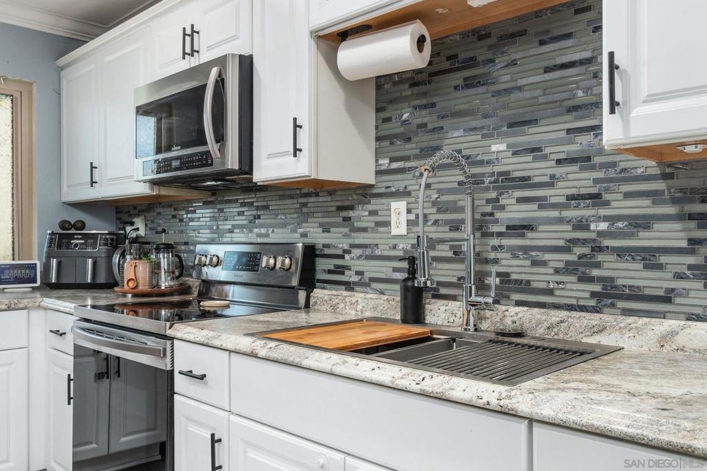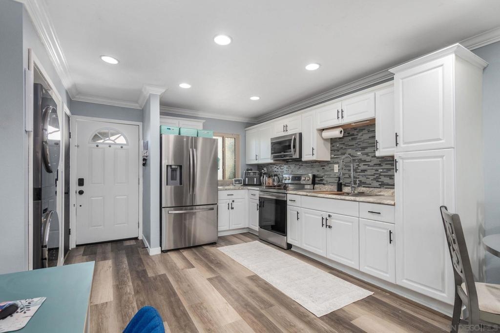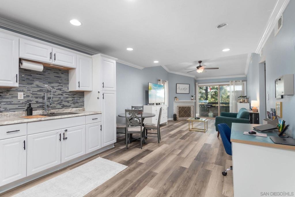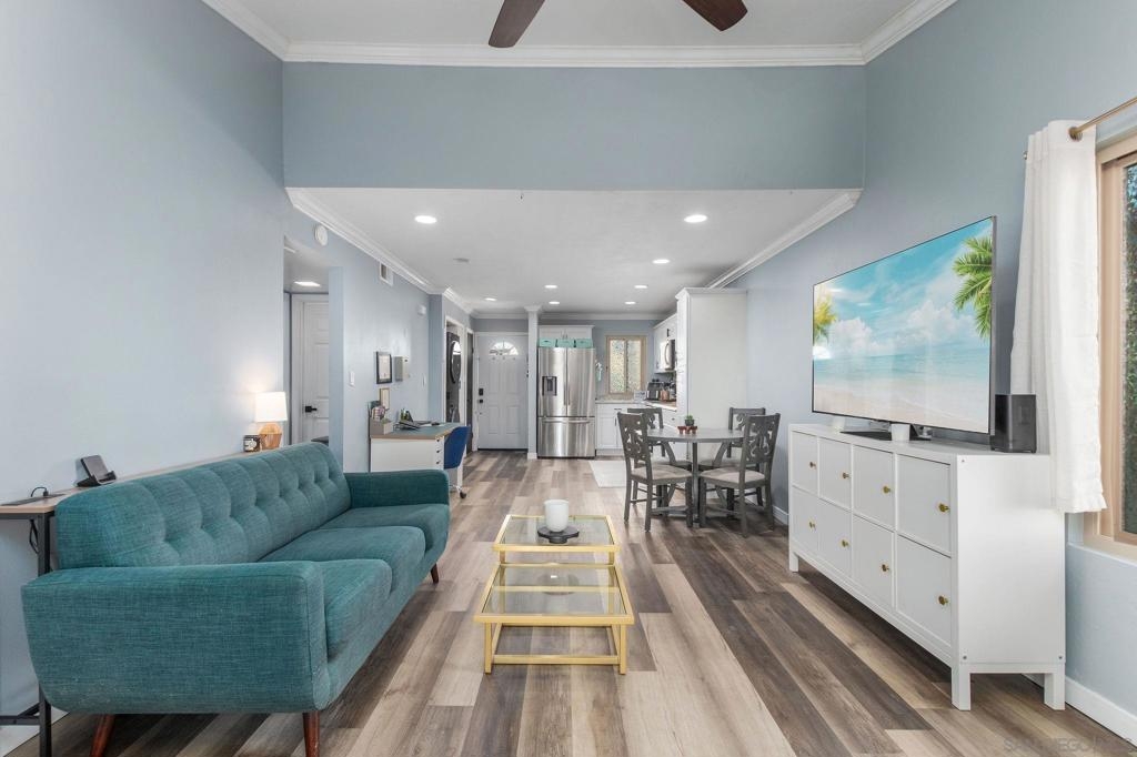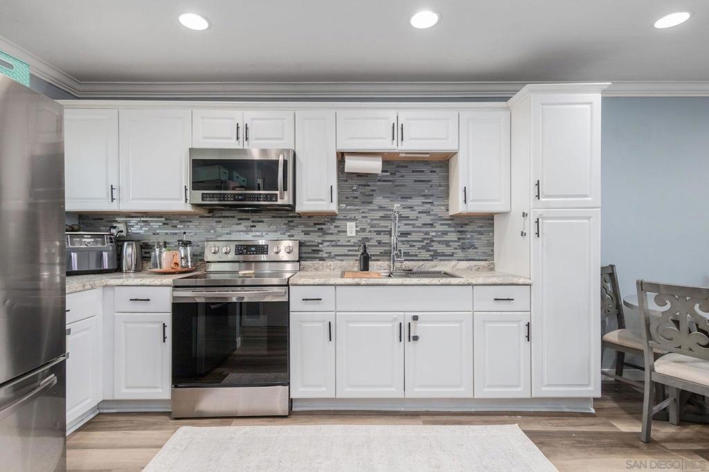 Well-maintained top-floor single level condo located within the highly desirable community of Melrose Villas in Chula Vista. This amazing residence features crown molding, recessed lighting, a cozy fireplace, updated bathrooms with new vanities, mirrors, and light fixtures, central AC, and upgraded LVP flooring throughout. Vaulted ceilings with large new windows bask the home in an abundance of natural light. A beautifully appointed kitchen boasting stainless steel appliances, custom backsplash, and crisp white shaker style cabinetry. A spacious primary suite offering its own en-suite bathroom. Outdoor living has been extended to a private balcony, making it perfect for entertaining. In-unit laundry with a washer and dryer that convey. Parking is a breeze with one assigned carport space and an additional unassigned space. Water included in the HOA. Great community amenities include a sparkling pool and spa. Conveniently located, just minutes away from Coronado and the Silver Strand, shopping, dining, parks, Interstate 805, plus so much more. VA approved complex. Don’t let this opportunity pass you by!