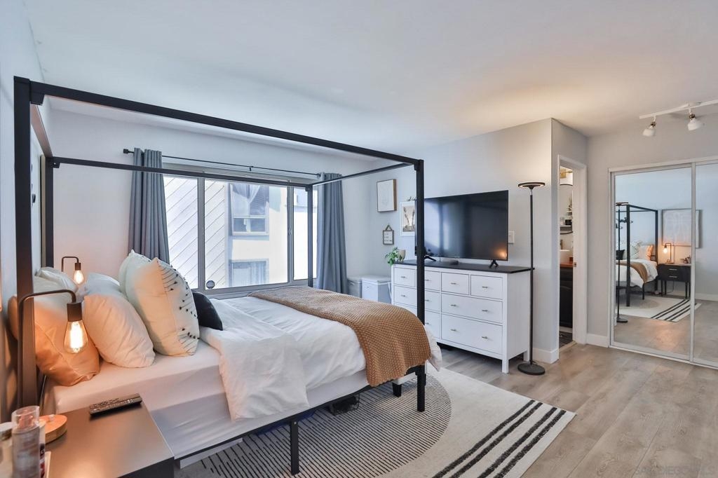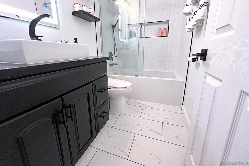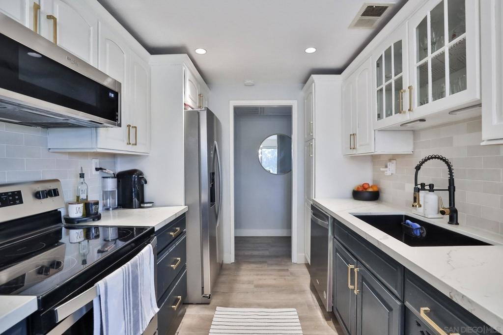 TURN-KEY 3br/2bath top floor corner unit condo in the gated community of Melrose Villas. Features a huge master bedroom and is upgraded from top to bottom with all the perks to make it a home. The kitchen boasts brand new quartz counter tops with modern two-tone kitchen cabinets, farmhouse sink and energy efficient appliances. Vaulted ceiling and fireplace in the living room, luxury vinyl flooring throughout, brand new doors and double pane windows. Two completely remodeled bathrooms featuring a waterfall shower in the master bath and a high-end bathtub in the guest bath with top quality materials and finishes. There is not 1 but 2 balconies for your enjoyment. This unit feels way bigger than it is. It also includes an attic with tons of space to store things as well as storage locker in assigned car port. Cool off in the pool during the hot summer months or relax in the jacuzzi after a long day. Close to the freeway, shopping, schools, and downtown Chula Vista. HOA includes water, so ZERO water bill. A MUST SEE!