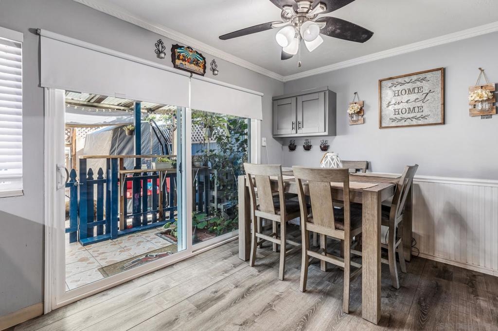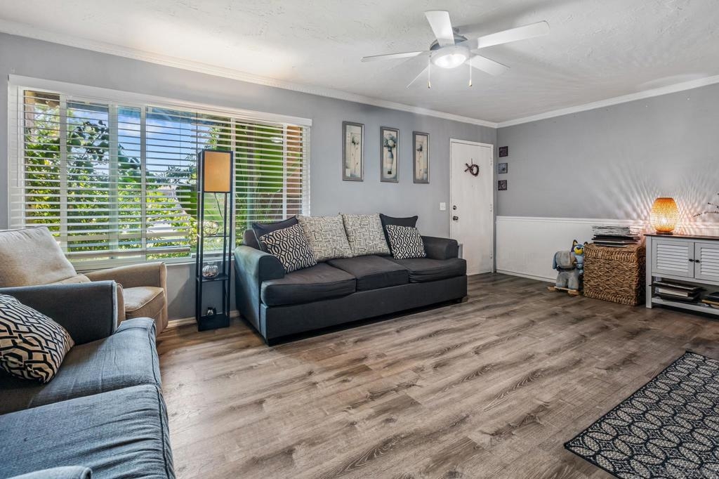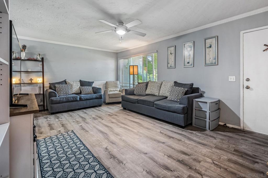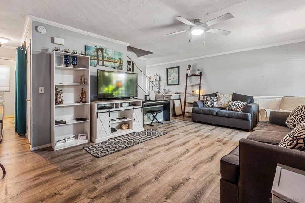 Welcome to a home where timeless style and everyday comfort come together. Thoughtfully updated with elegant touches—like crown molding, wainscoting, and beautiful flooring throughout—this inviting residence offers a harmonious blend of form and function. The spacious living room is filled with natural light from a large picture window, creating a bright and welcoming atmosphere. The modern kitchen includes ample cabinetry and opens to a private patio through sliding glass doors—perfect for relaxing or entertaining. Upstairs, you’ll find three well-sized bedrooms and a full bathroom, providing a peaceful and private retreat. Convenient features include an interior laundry area, two dedicated carport spaces, and a serene backyard oasis. The covered patio includes built-in shelving for plants or décor, while a garden area offers space to grow your own greenery. Community amenities such as a sparkling pool and lush greenbelts enhance your lifestyle with relaxation and outdoor enjoyment. With quick access to major freeways and VA financing already approved, this updated townhome offers comfort, charm, and convenience all in one.