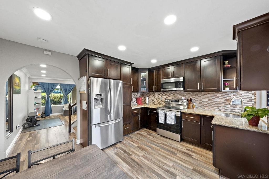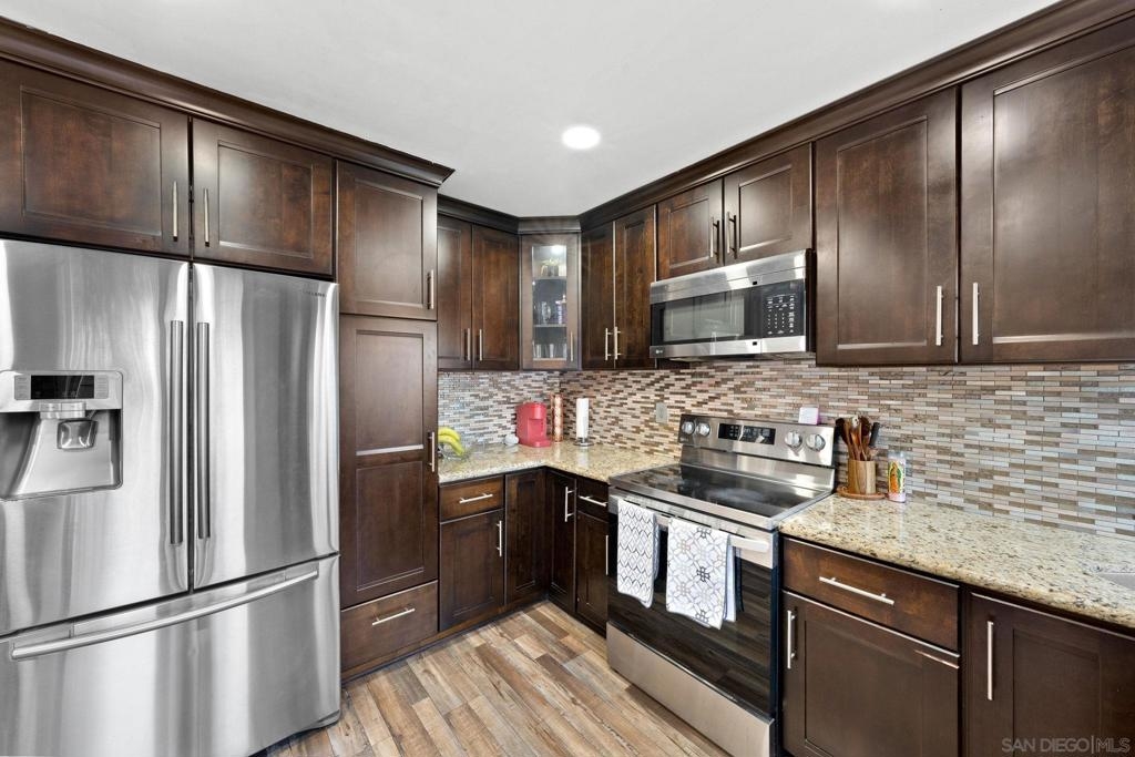 Beautiful 3 Bedroom 1.5 Bathroom condo features remodeled kitchen, Stainless steal appliances, recessed lighting, vinyl windows, and great size yard. This home comes with 2 parking right behind the unit, 1 covered. Great natural light, solar panels, plenty of storage, full size laundry hook ups, and a tankless water heater. The community is clean and the unit is located close to park and pool. Come see this place in person!
