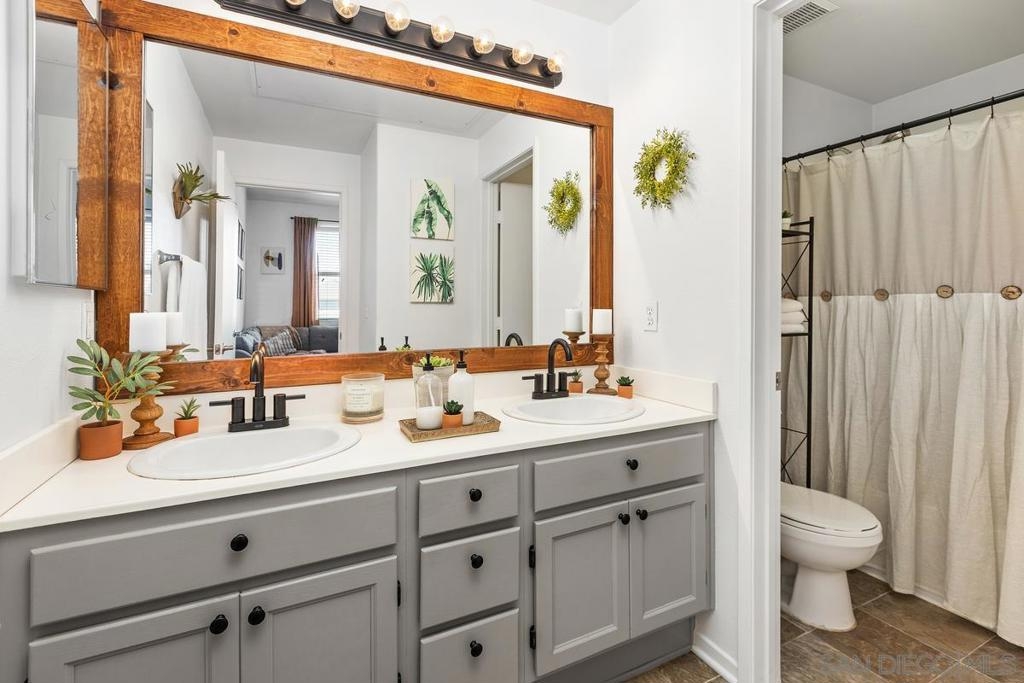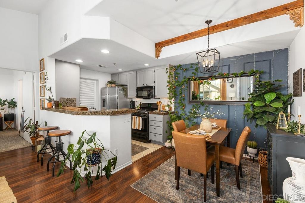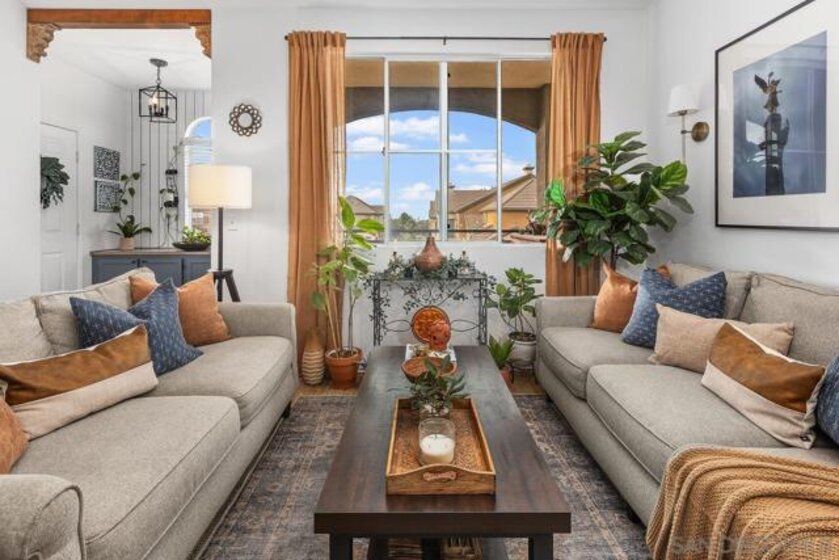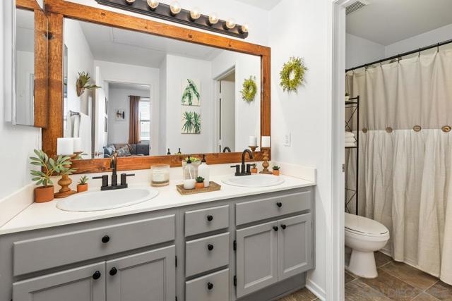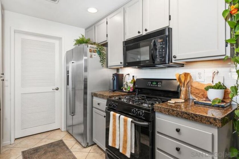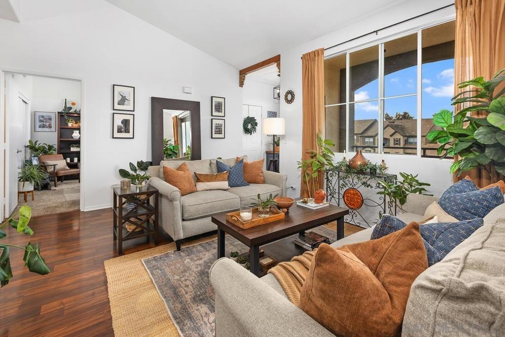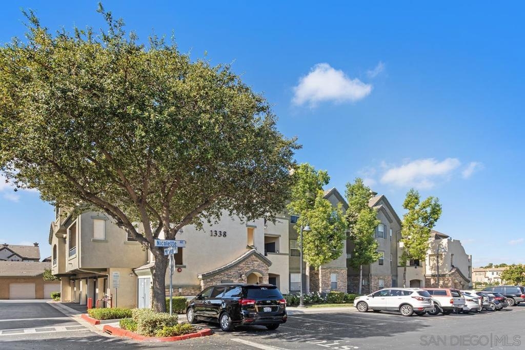 Perched on the top floor facing west, 1338 Nicolette Ave Unit 1033 Chula Vista, CA 91913 is a pristine 959 sqft Dual Primary Suite 2 bedroom 2 bathroom condominium located in the French inspired Mer Soleil community which enjoys two pools (one lap fitness pool and another recreation pool), green spaces, basketball court, and playground with all the common spaces and buildings very well maintained. This resort style home is a must see! Immediately upon entering you are welcomed with vaulted ceilings into the warmth of the open layout living room, dining room and living room. Enjoy sunsets from your own private balcony. With the comfort of central air conditioning, dual pane windows, striking granite kitchen countertops and tile kitchen floor, luxurious laminate flooring in the dining and living room and plush carpet in the bedrooms, you will feel like you're on vacation everyday you call this place home. Laundry in unit and walking distance to excellent schools and shopping rounds out the convenience of this unit as a perfect place to call home. One uncovered parking spot and one car garage assigned.