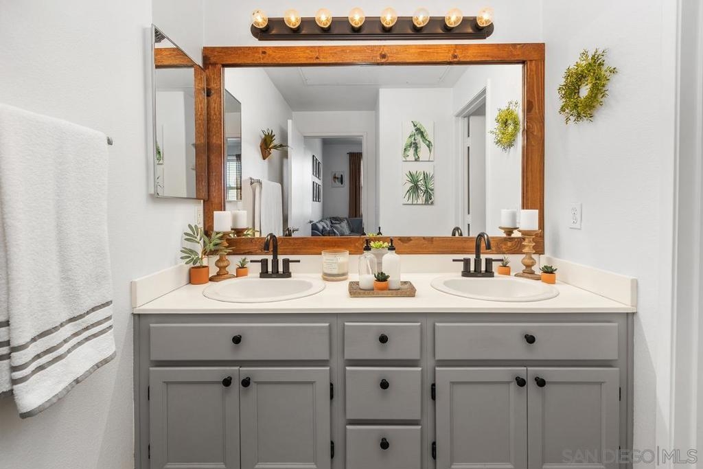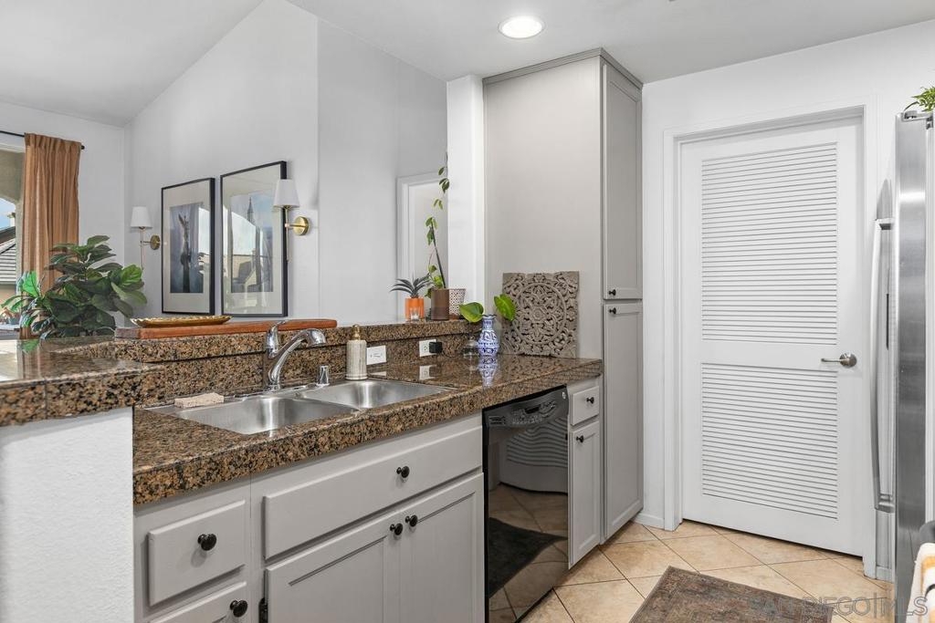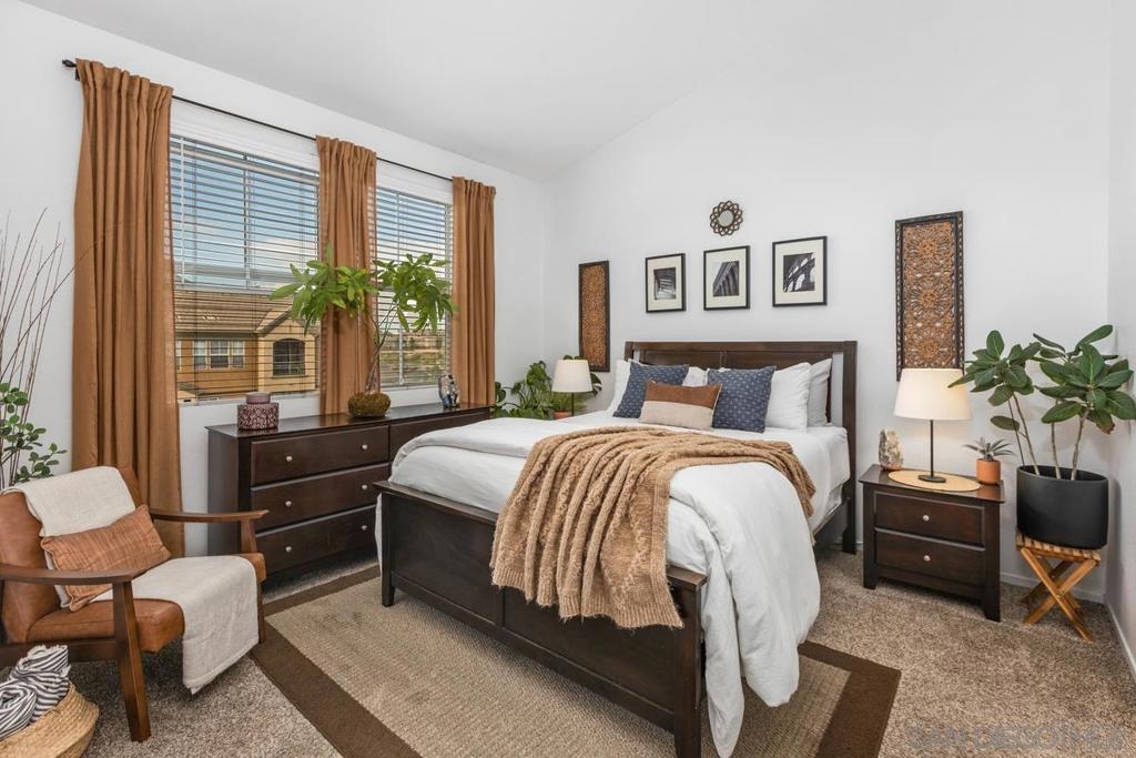 Perched on the top floor facing west, 1338 Nicolette Ave Unit 1033 Chula Vista, CA 91913 is a pristine 959 sqft Dual Primary Suite 2 bedroom 2 bathroom condominium located in the French inspired Mer Soleil community which enjoys two pools (one lap fitness pool and another recreation pool), green spaces, basketball court, and playground with all the common spaces and buildings very well maintained. This resort style home is a must see! Immediately upon entering you are welcomed with vaulted ceilings into the warmth of the open layout living room, dining room and living room. Enjoy sunsets from your own private balcony. With the comfort of central air conditioning, dual pane windows, striking granite kitchen countertops and tile kitchen floor, luxurious laminate flooring in the dining and living room and plush carpet in the bedrooms, you will feel like you're on vacation everyday you call this place home. Laundry in unit and walking distance to excellent schools and shopping rounds out the convenience of this unit as a perfect place to call home. One uncovered parking spot and one car garage assigned.