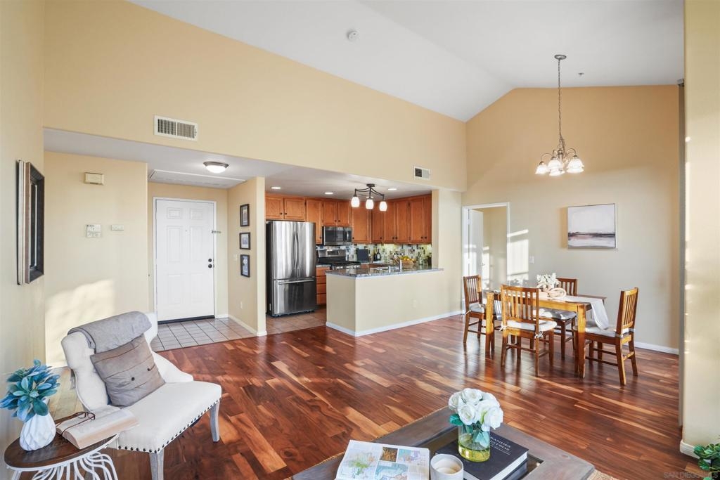 "South-Facing Sanctuary in the Sky: Top Floor. End Unit. Zero Neighbors. All Light." WHAT WE LOVE: Nobody above. Nobody beside. And nobody blocking your view of those palm trees and that big blue sky. This top-floor, end-to-end unit sits perched at the outer edge of the community — giving you rare privacy, unbeatable light, and a vibe that’s all yours. Single-car garage PLUS an extra parking spot with tons of storage and closet space. Inside, the vaulted ceilings, wood floors, and divided-light windows keep the charm going. Enjoy a chill moment on the south-facing balcony, or sneak out directly from your primary suite with its own sliding door and walk-in closet. You’ve got a private garage, a smart layout, in-unit laundry, and a huge storage closet to make daily life easier. Light, space, and peace of mind — it’s all here. WHAT WE LOVE (CONT…): 1864 Opaline is a rare find: a top-floor, end-unit condo with zero shared walls to the left or right, and no neighbors above. Plus, it’s located at the very end of the community, offering views of palm trees, open sky, and zero building clutter out your windows. Inside, you'll find vaulted ceilings, hardwood floors throughout, and divided light windows that keep the space feeling bright and warm. The open living/dining area leads to a sunny south-facing balcony, accessible from both the living room and the primary bedroom retreat, which features a walk-in closet and mirrored wardrobe doors. The hall bathroom includes a massive storage closet, plus there’s in-unit laundry, a private garage, and access to two community pools, spa, and more. Whether you're a first-time buyer or savvy investor, this home hits that sweet spot between comfort, style, and smart value — all in a gated, amenity-rich community near Otay Ranch shops, parks, and schools.