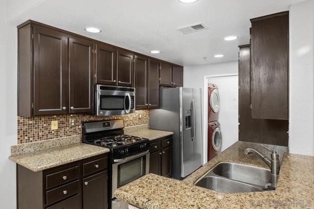 VRM: Seller will entertain offers between $620,000 & $649,777. Welcome to the Mer Soleil Complex in Otay Ranch!!! Home has 3 spacious bedrooms, 2 baths, & 1315 sq.ft. Located on the 2nd floor, home boasts granite counter tops, stainless appliances, lots of cabinets in the kitchen, & stacked laundry. Kitchen opens up to the dining area and large living room. Primary Suite has a huge walk in closet, dual sinks in the bathroom, shower/tub, & a linen cabinet. The large 2nd bedroom has direct access to the Jack & Jill hall bathroom. Both bedrooms have lots of closet space. At the front door entry, there is a private balcony & a huge storage closet. There is a private one car garage with lots of shelving for storage off Rochelle (garage J) and also one assigned parking space #2526. Close to the pool, spa, & exercise room. Pack your boxes, it's time to move!!!