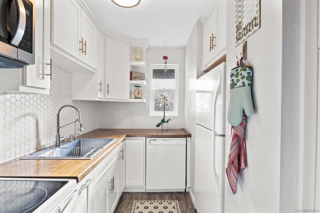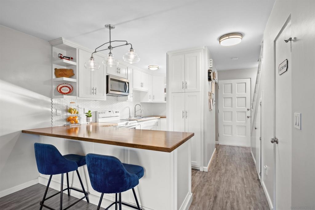 This move-in ready condo end unit is a gem of comfort and convenience. With beautiful upgrades including flooring, kitchen, and dual pane windows and sliders, this home is a haven of modern elegance. Enjoy the added privacy of having only one adjacent neighbor and no one above or below. Upstairs, you'll find two large bedrooms, each featuring its own balcony and high ceilings, creating a peaceful retreat within the home. The convenience of a washer and dryer inside the unit, along with water included in the HOA fees, adds to the ease of living in this space. A designated carport spot, complete with its own storage cabinets, is located directly across from the unit. Additionally, this unit offers a unique outdoor living space with a fenced-in side yard and a back patio and yard featuring a trail with mature fruit trees. Mission Gardens offers an array of amenities, including a pool, rec room, and nearby open lawn, perfect for relaxation and recreation. With its desirable upgrades, spacious layout, and access to a range of community amenities, this 2-story condo offers the ideal blend of comfort and practicality for its future residents. In addition to the wonderful features, it's important to note the substantial investment by the City of Chula Vista in the local area. With over 1 billion dollars allocated, this investment encompasses the Chula Vista Bayfront Master Plan, which envisions 70 acres of new parks, 120 acres of open space, a scenic shoreline promenade, as well as hotel, restaurant, and retail spaces. This significant commitment not only enhances the appeal of the community but also sets the stage for further growth, making it an even more compelling location for prospective buyers or tenants. Furthermore, this unit is conveniently situated just steps away from downtown Chula Vista and provides effortless access to nearby freeways, adding to its convenience and appeal.