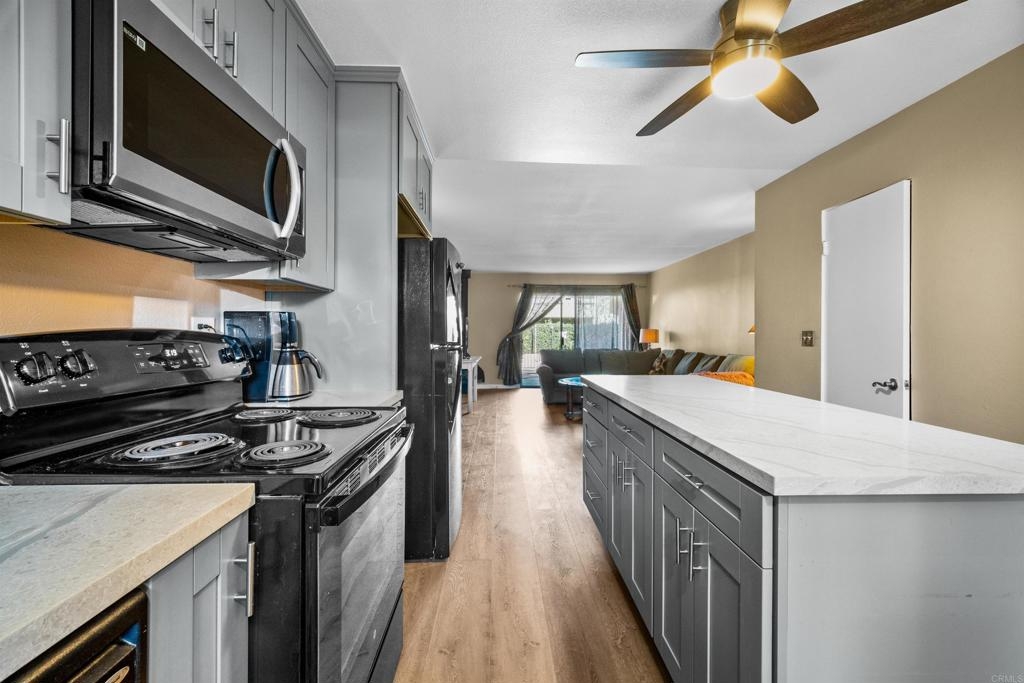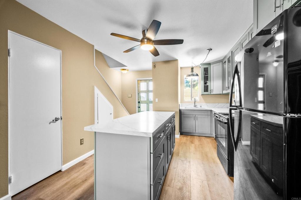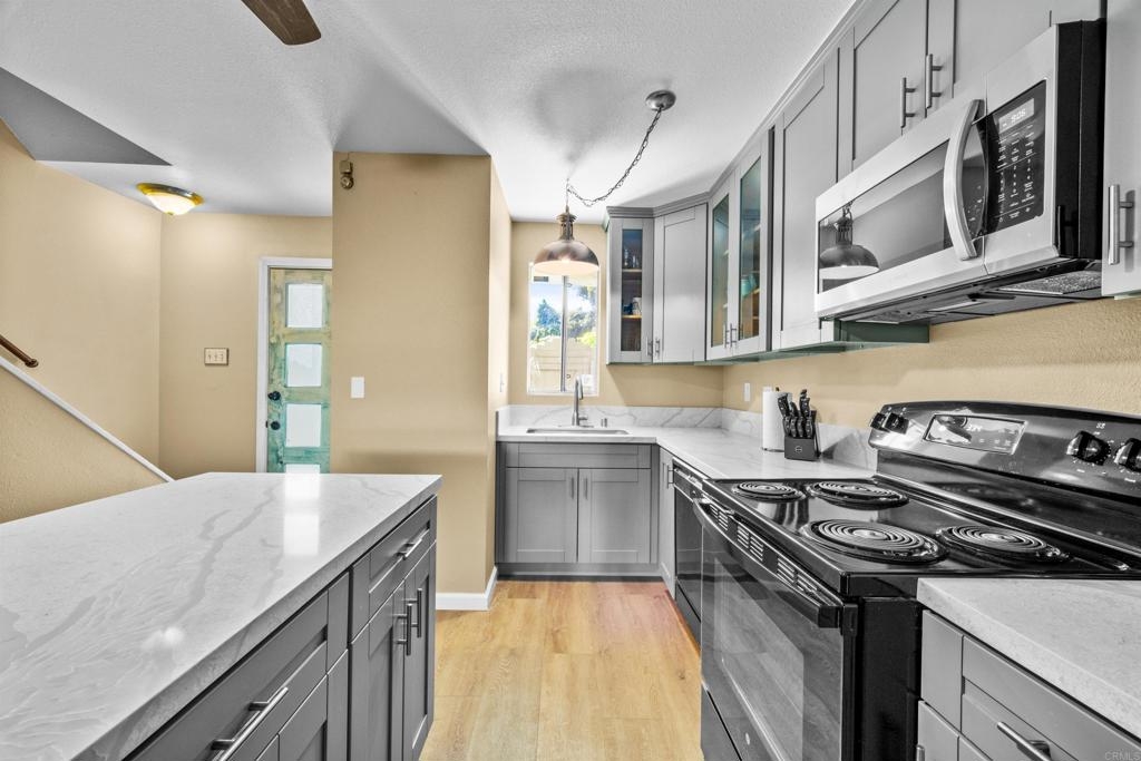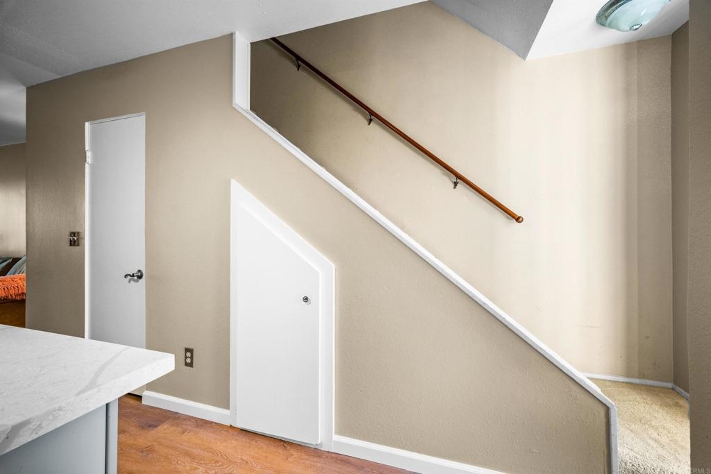 Move-In Ready Condo with Modern Upgrades and Prime Location. This condo offers comfort, convenience, and privacy. Recently upgraded with new flooring, a remodeled kitchen and newer down stairs flooring. Upstairs features two large bedrooms, each with high ceilings and private balconies. Enjoy in-unit laundry, water included in HOA fees, and a designated carport with extra storage right across from the unit. Outdoor spaces include a fenced side yard, back patio, and a trail with mature fruit trees. Community amenities in Mission Gardens include a pool, rec room, and open green spaces. Situated near downtown Chula Vista and major freeways, this condo is part of an area benefiting from a significant city investment, including the Chula Vista Bayfront Master Plan with new parks, open spaces, and future retail and dining options.