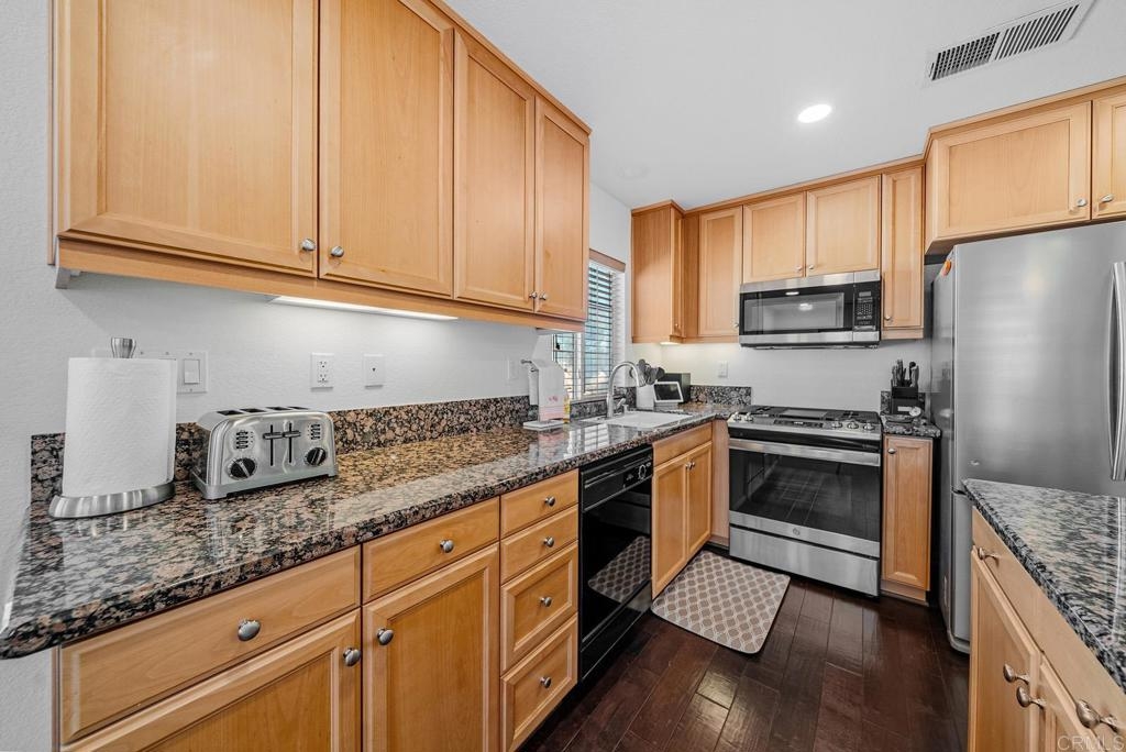 Welcome to this stunning 2-bedroom, 2-bathroom condo in the highly sought-after Monet Complex of Otay Ranch. As you approach the unit, you’ll immediately be welcomed by a serene private balcony, the perfect place to relax and soak in the peaceful surroundings. Step inside, go upstairs, and discover an open-concept layout that flows effortlessly between the living room, dining area, and kitchen. This spacious and inviting design creates the perfect backdrop for making memories and enjoying everyday life. The kitchen, with its stainless steel appliances and elegant granite countertops, inspires both creativity and comfort. There are two cozy bedrooms, including the primary suite, which offers an en-suite bathroom and a convenient closet. The entire condo has been freshly painted and re-carpeted, offering a clean, bright, and modern feel throughout, while the bathrooms feature beautiful tile flooring. This home goes beyond just comfort, with an attached 1-car garage, secure parking, and washer/dryer hook-ups for your convenience. Plus, with one additional permitted parking spot, you’ll always have the space you need. The HOA offers access to community parks, a sports court, and a refreshing pool, giving you the perfect spaces to unwind and enjoy life. Located near vibrant restaurants, shopping, schools, and with easy freeway access, this condo offers the ideal combination of tranquility and convenience. This is more than just a place to live; it’s a place to grow, connect, and truly feel at home. Don’t miss the opportunity to make this exceptional property your own and start the next chapter of your life